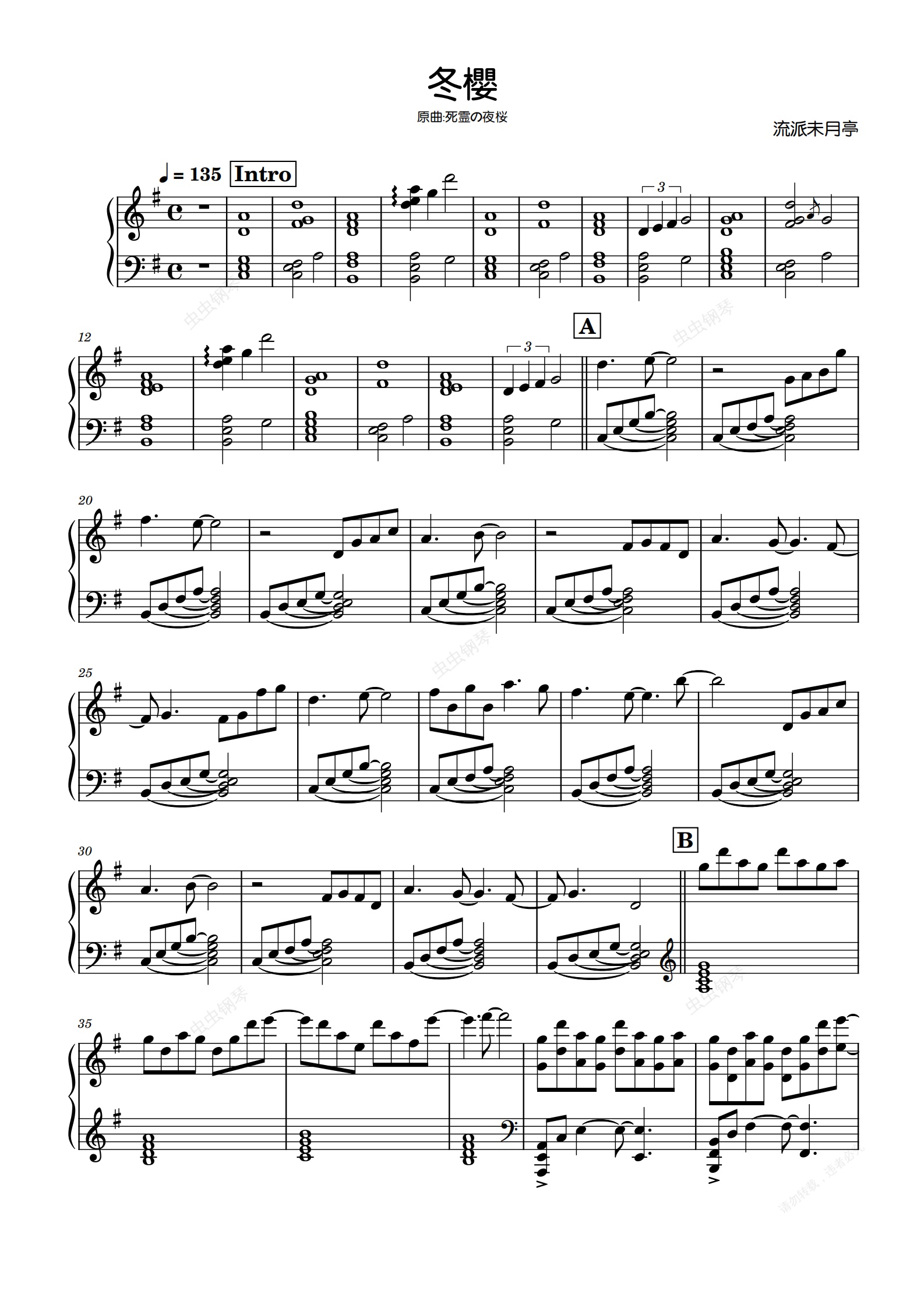 钢琴谱:[东方project]冬櫻--流派未月亭