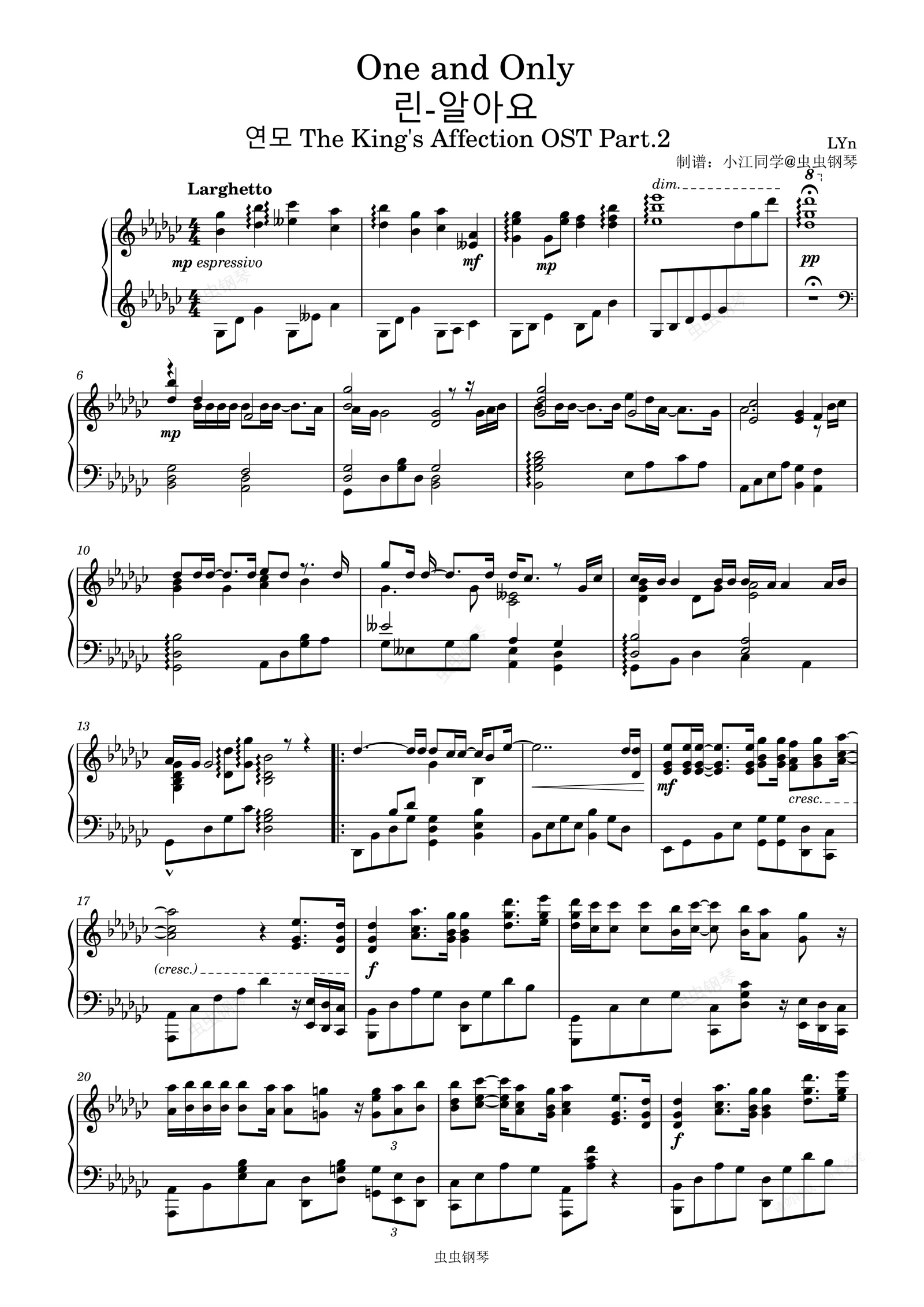 钢琴谱:One and Only 린-알아요