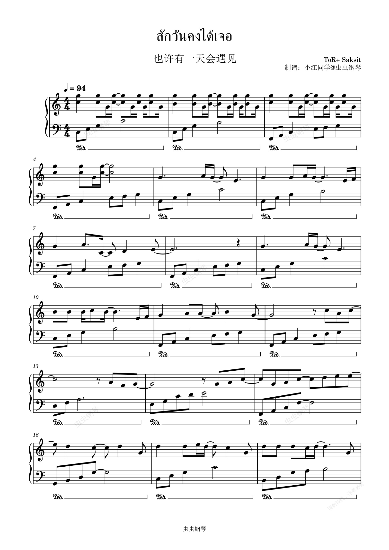 钢琴谱:สักวันคงได้เจอ 也许有一天会遇见