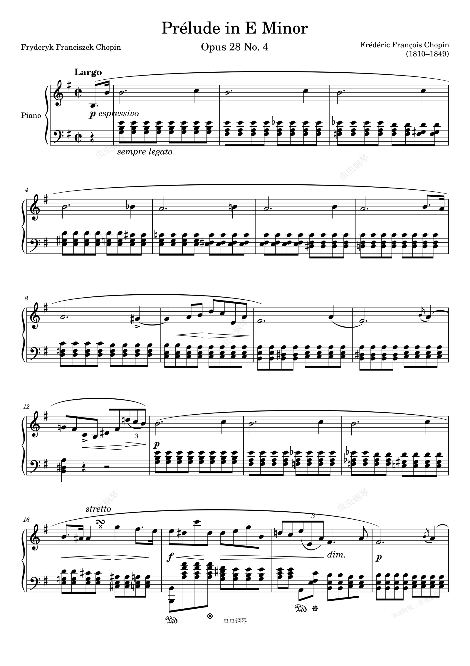 钢琴谱:肖邦e小调前奏曲 Op.28 No. 4
