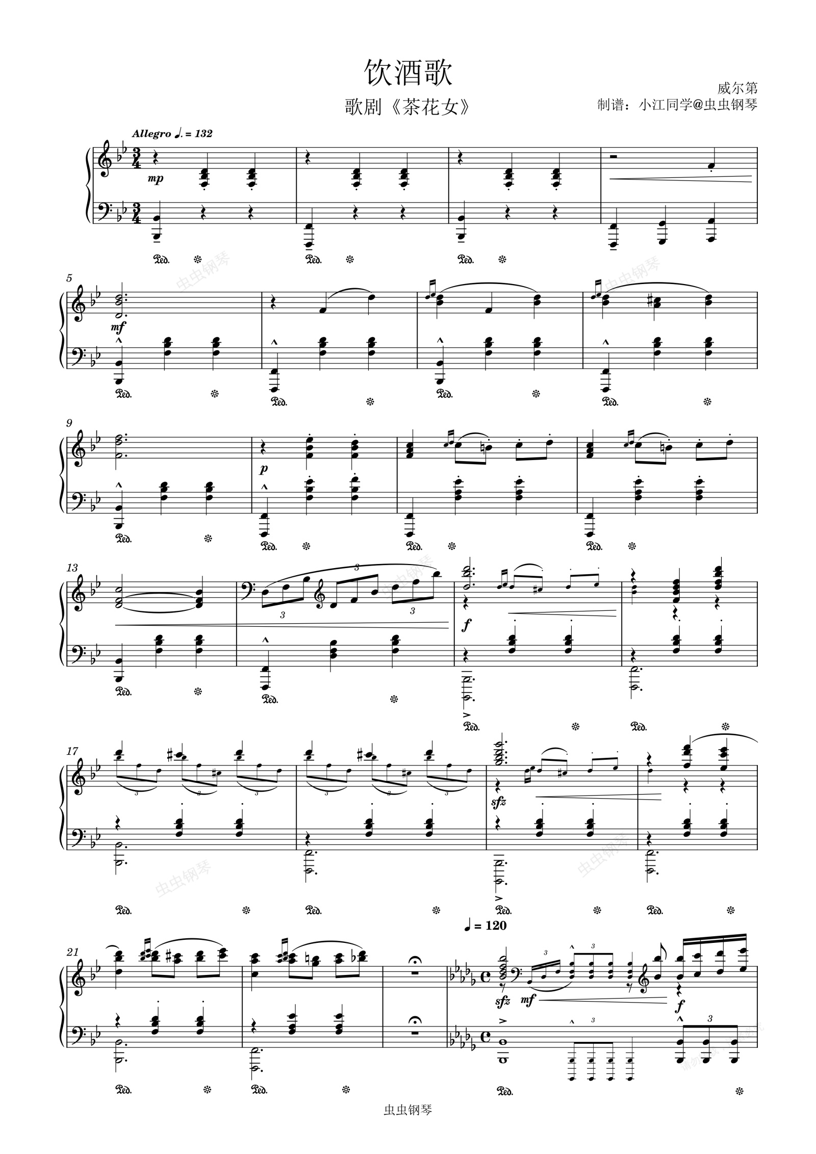 钢琴谱:饮酒歌 选自歌剧《茶花女》