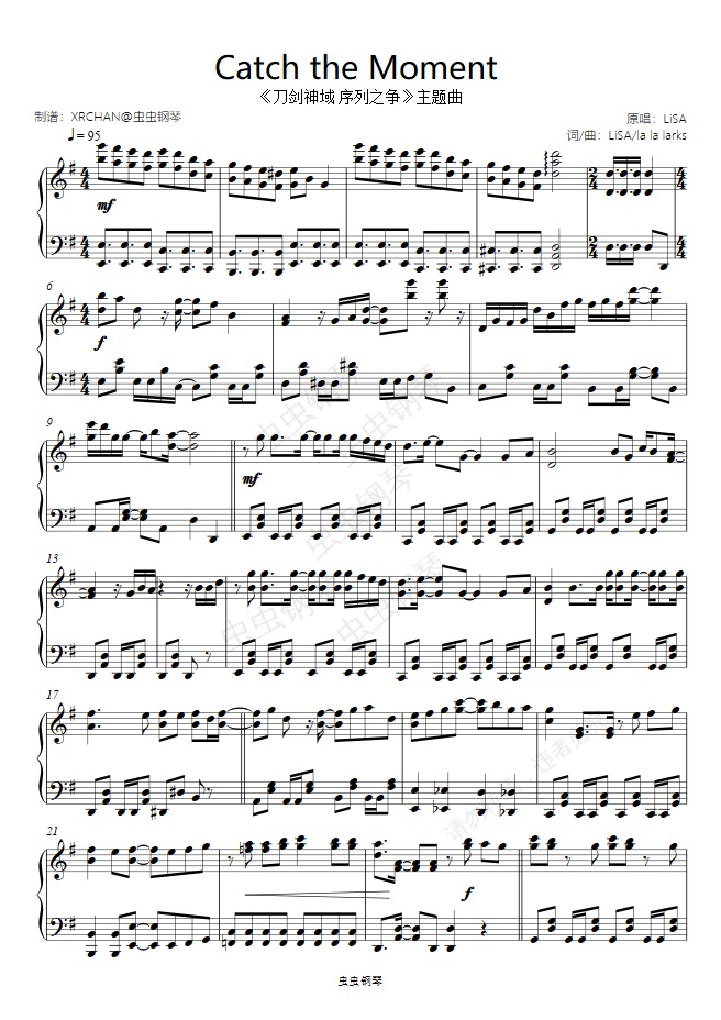 钢琴谱:Catch the Moment《刀剑神域 序列之争》初级版