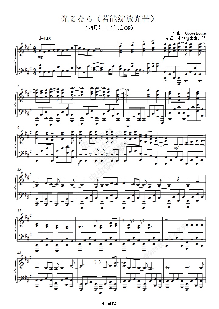 钢琴谱:光るなら(若能绽放光芒)《四月是你的谎言》OP