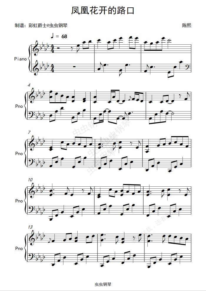 钢琴谱:凤凰花开的路口 钢琴 林志炫 毕业歌曲