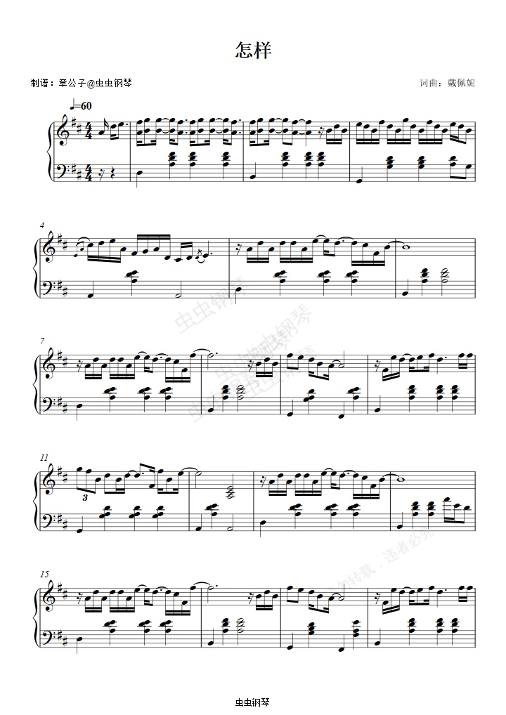 钢琴谱:《怎样》- 戴佩妮  独奏谱