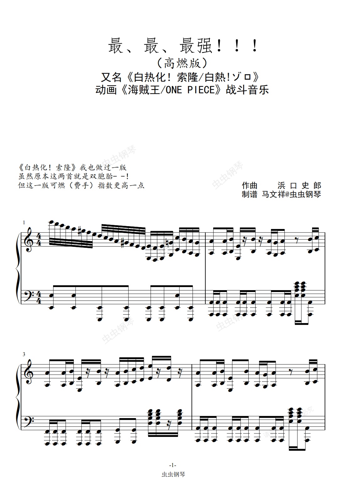 钢琴谱:海贼王《最、最、最强!!!》-高燃版--海贼王/ONE PIECE战斗音乐