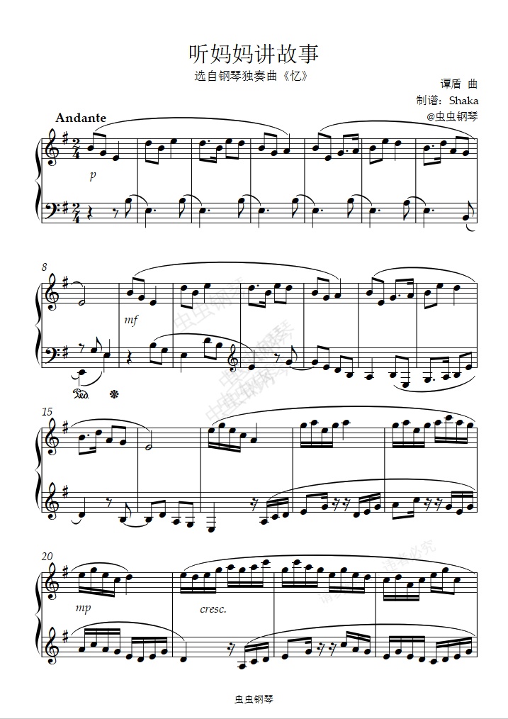 钢琴谱:听妈妈讲故事 谭盾 ZYY 考级曲目