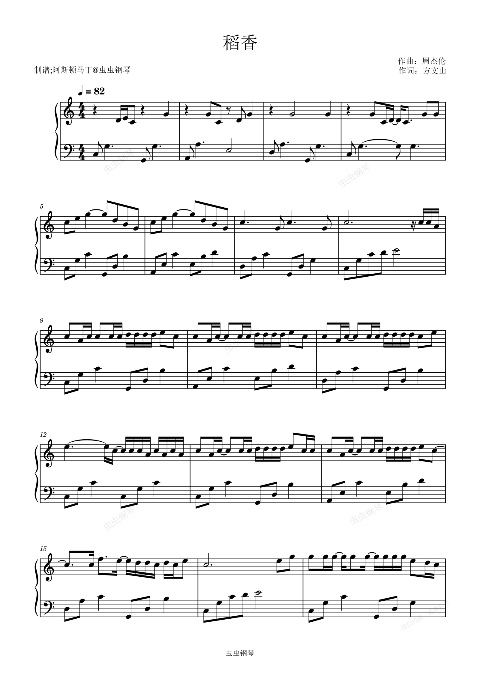 钢琴谱:稻香 - 周杰伦【初学简易版】