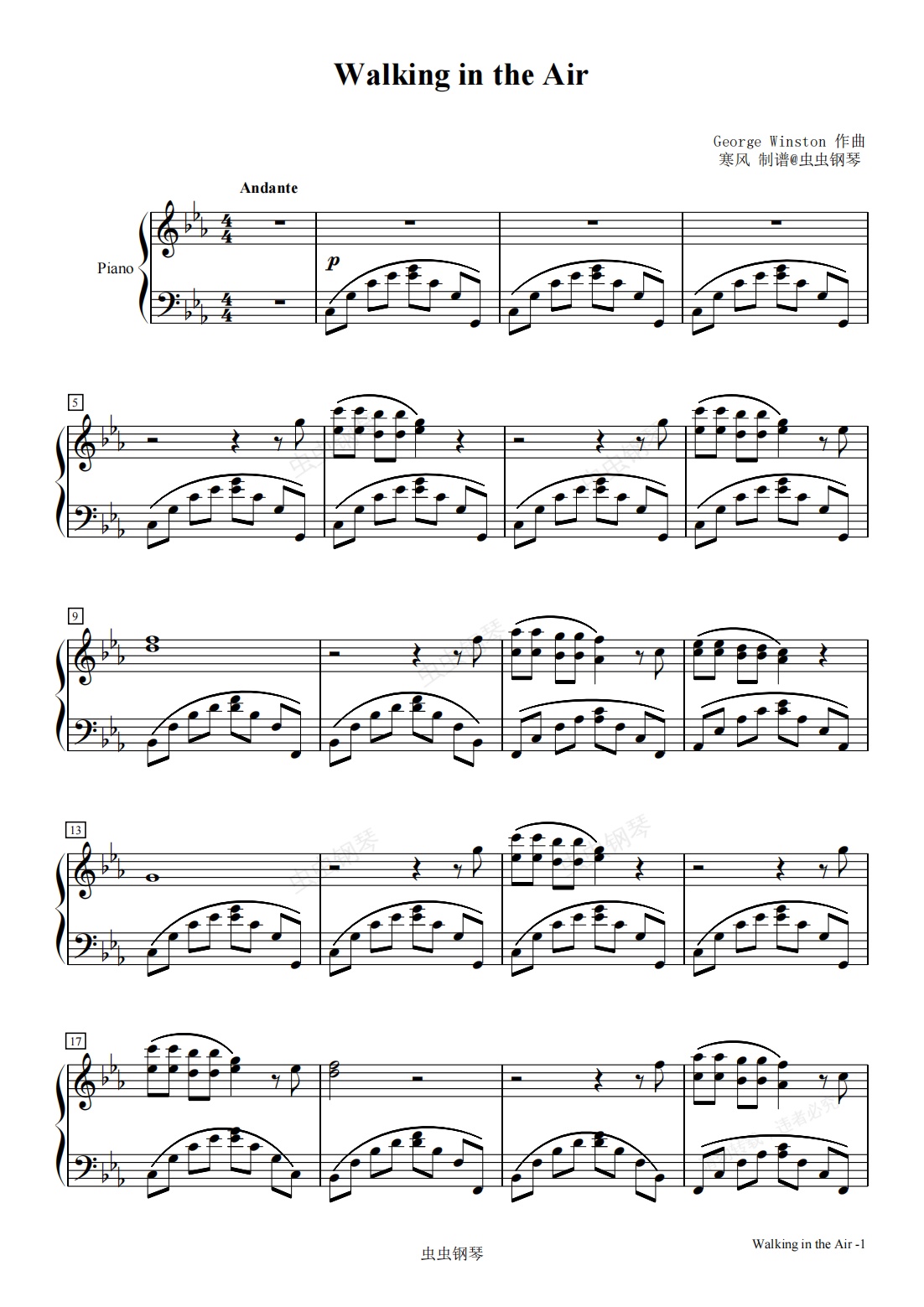 钢琴谱:Walking in the Air