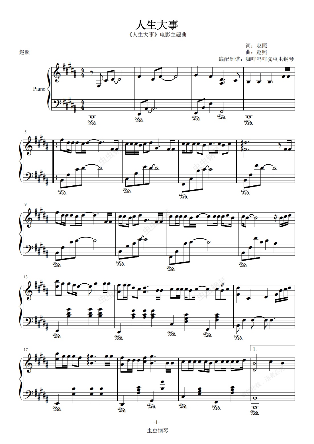 钢琴谱:人生大事-赵照 电影《人生大事》钢琴谱