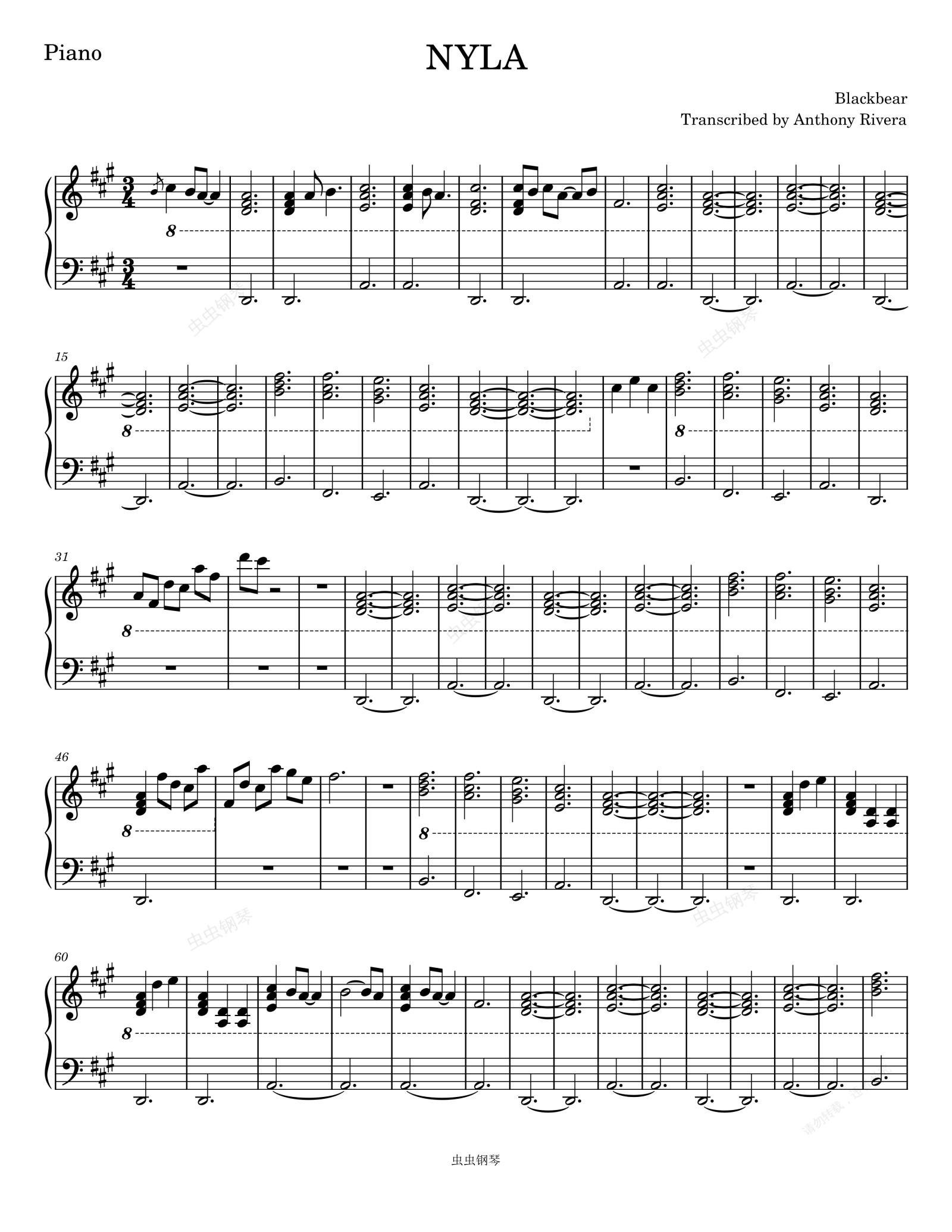 钢琴谱:blackbear-NYLA