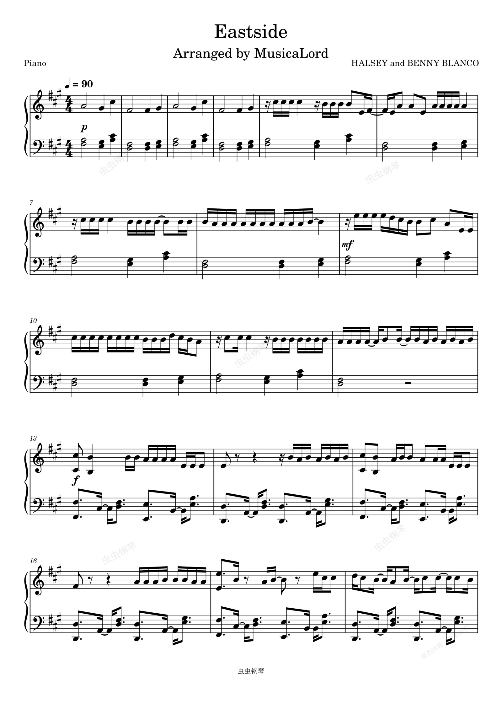 钢琴谱:Eastside-Benny Blanco/Nathan Perez