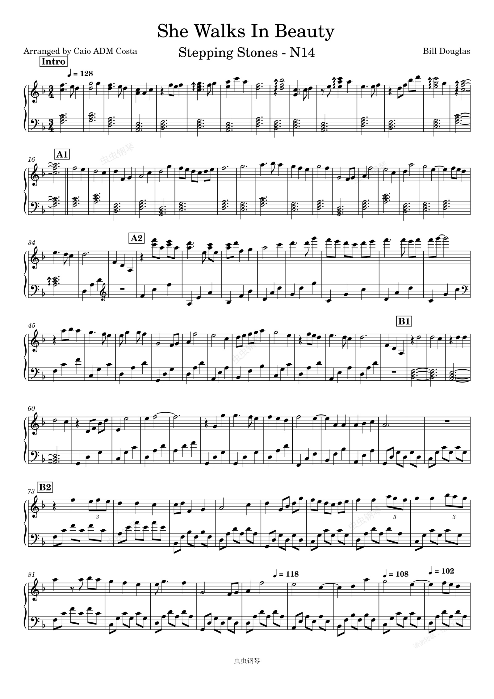 钢琴谱:She Walks In Beauty -Bill Douglas