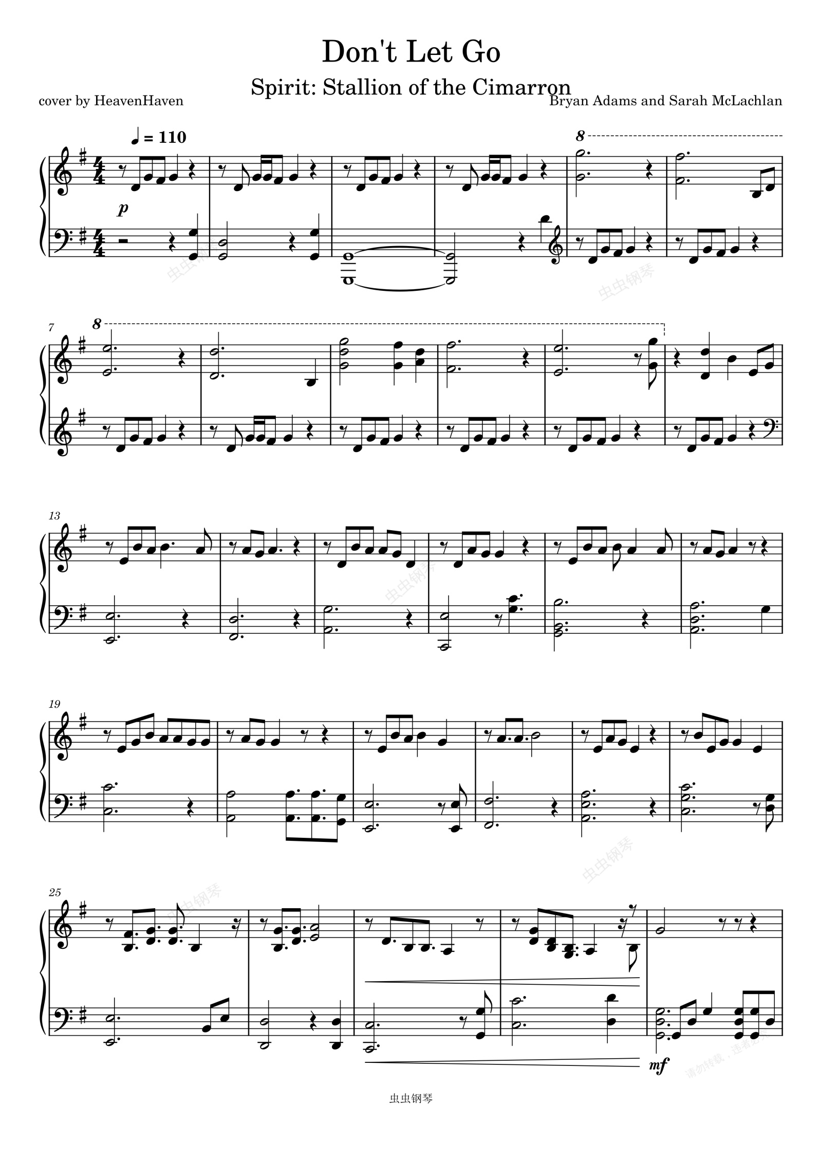 钢琴谱:小马王 电影 Don't Let Go-Bryan Adams/Sarah McLachlan
