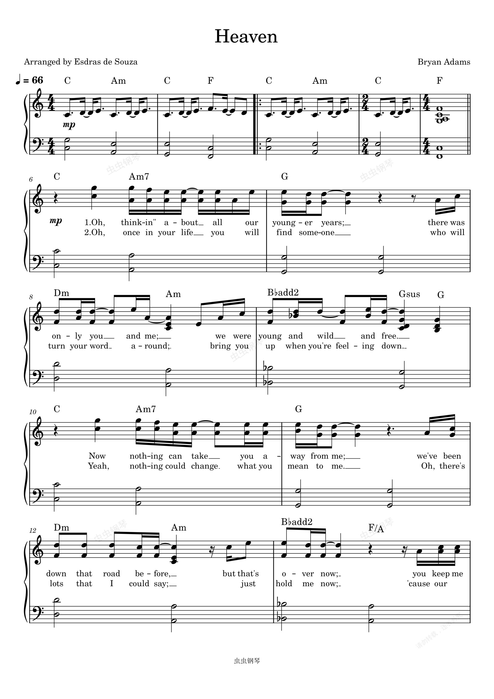 钢琴谱:Heaven-Bryan Adams