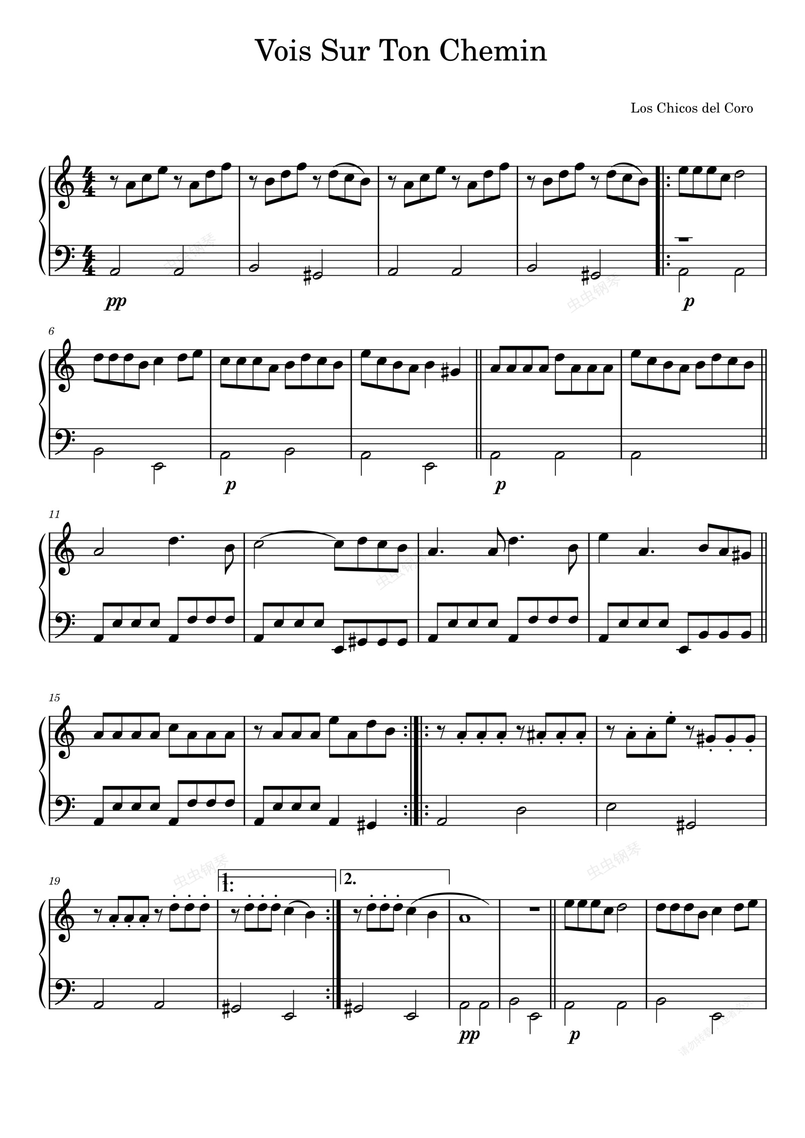 钢琴谱:Vois Sur Ton Chemin-Los Chicos del Coro