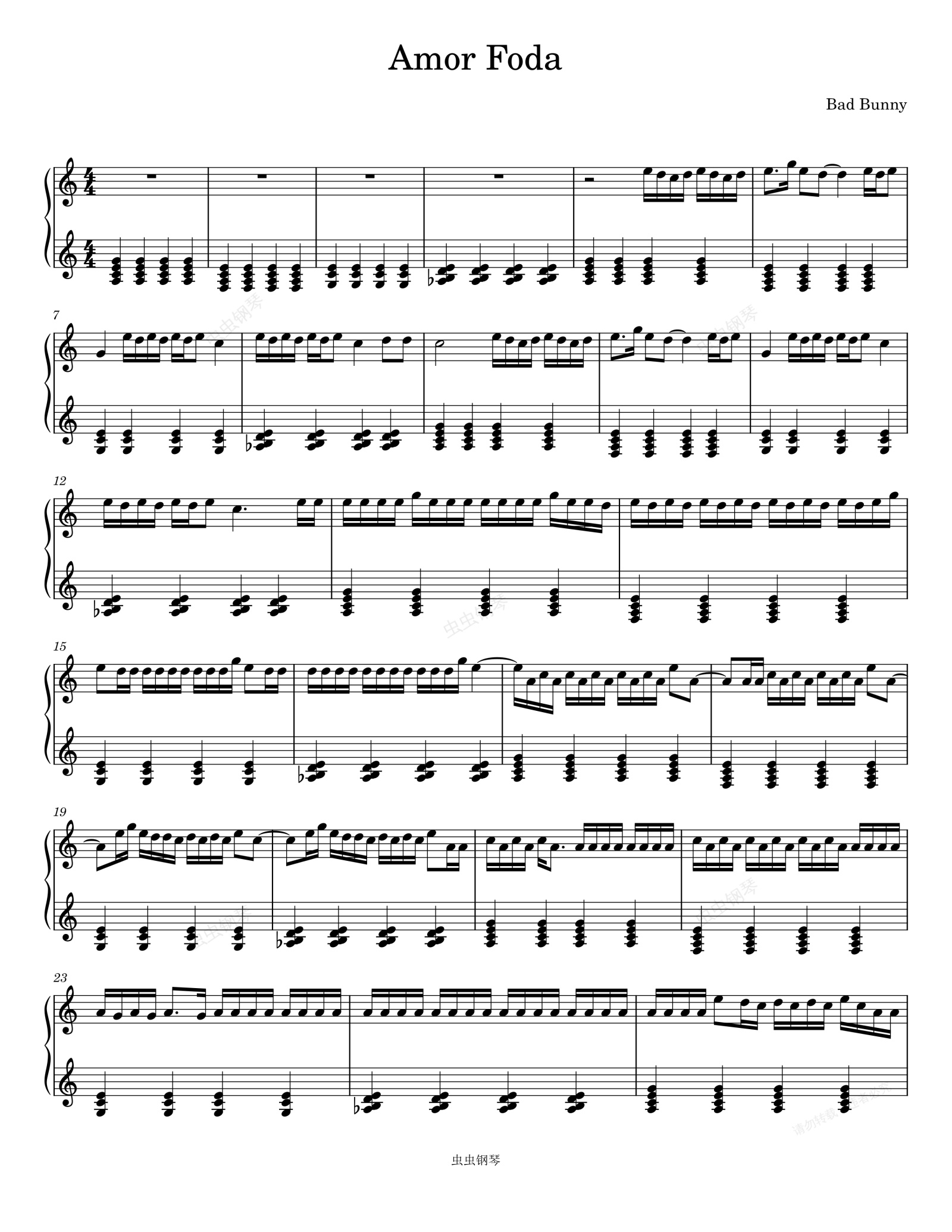钢琴谱:Amor Foda-Bad Bunny