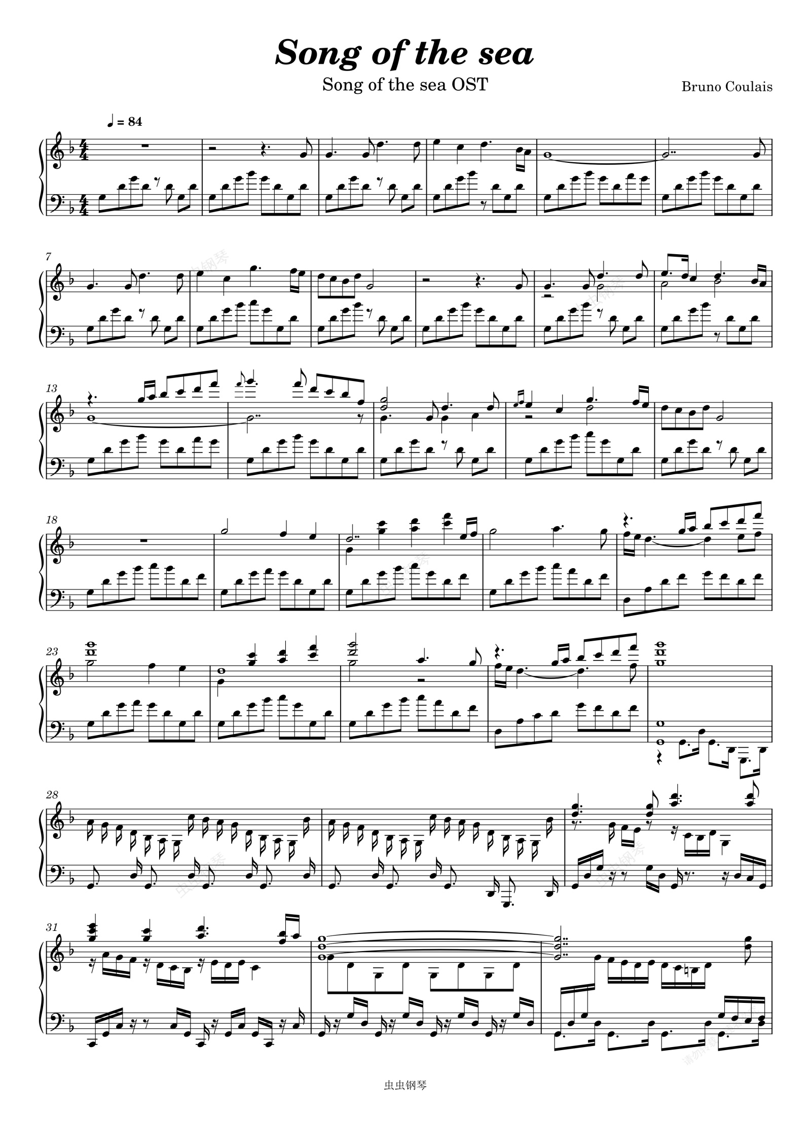 钢琴谱:海洋之歌 动画电影-Song of the sea-Bruno Coulais
