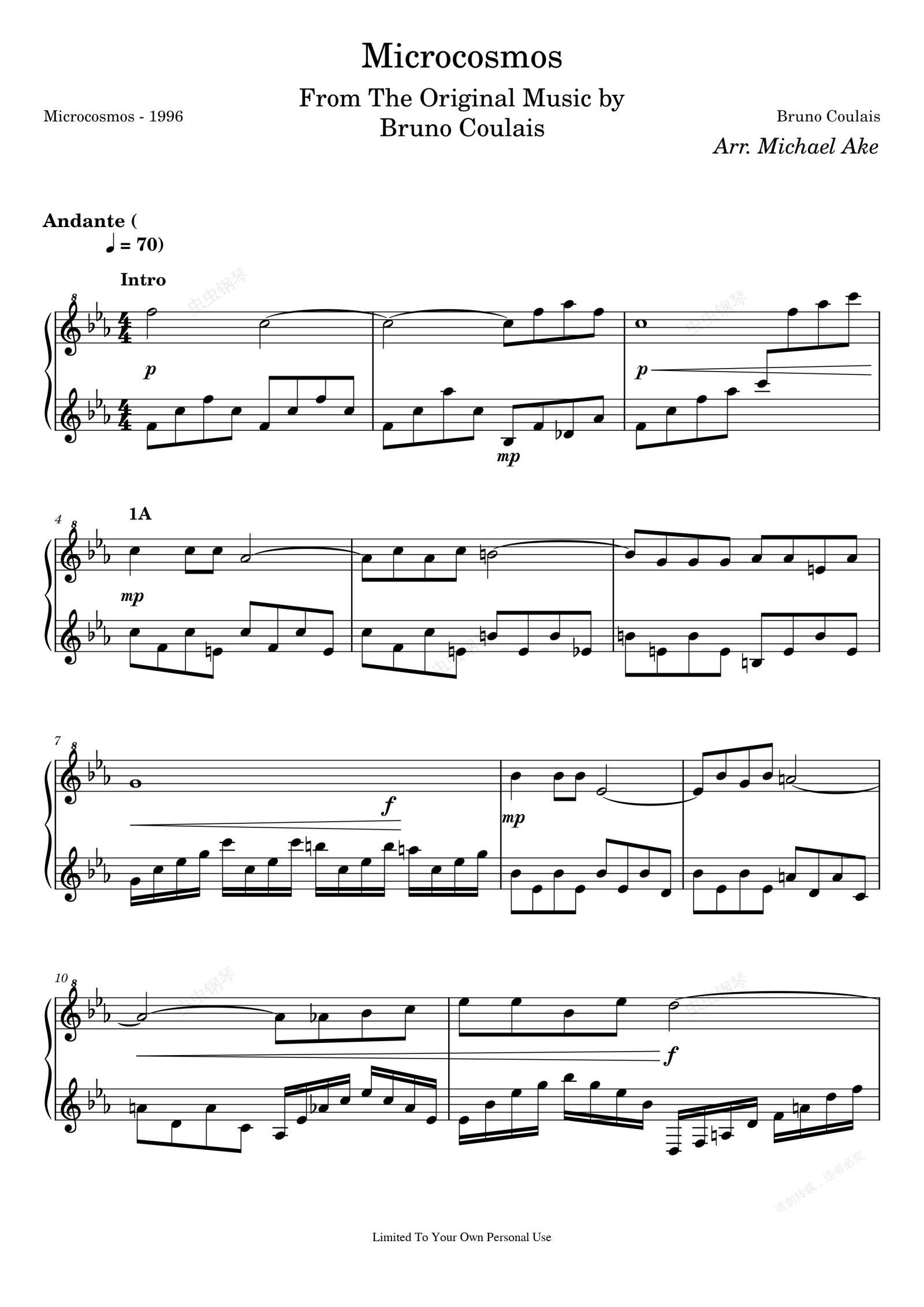 钢琴谱:Microcosmos-Bruno Coulais