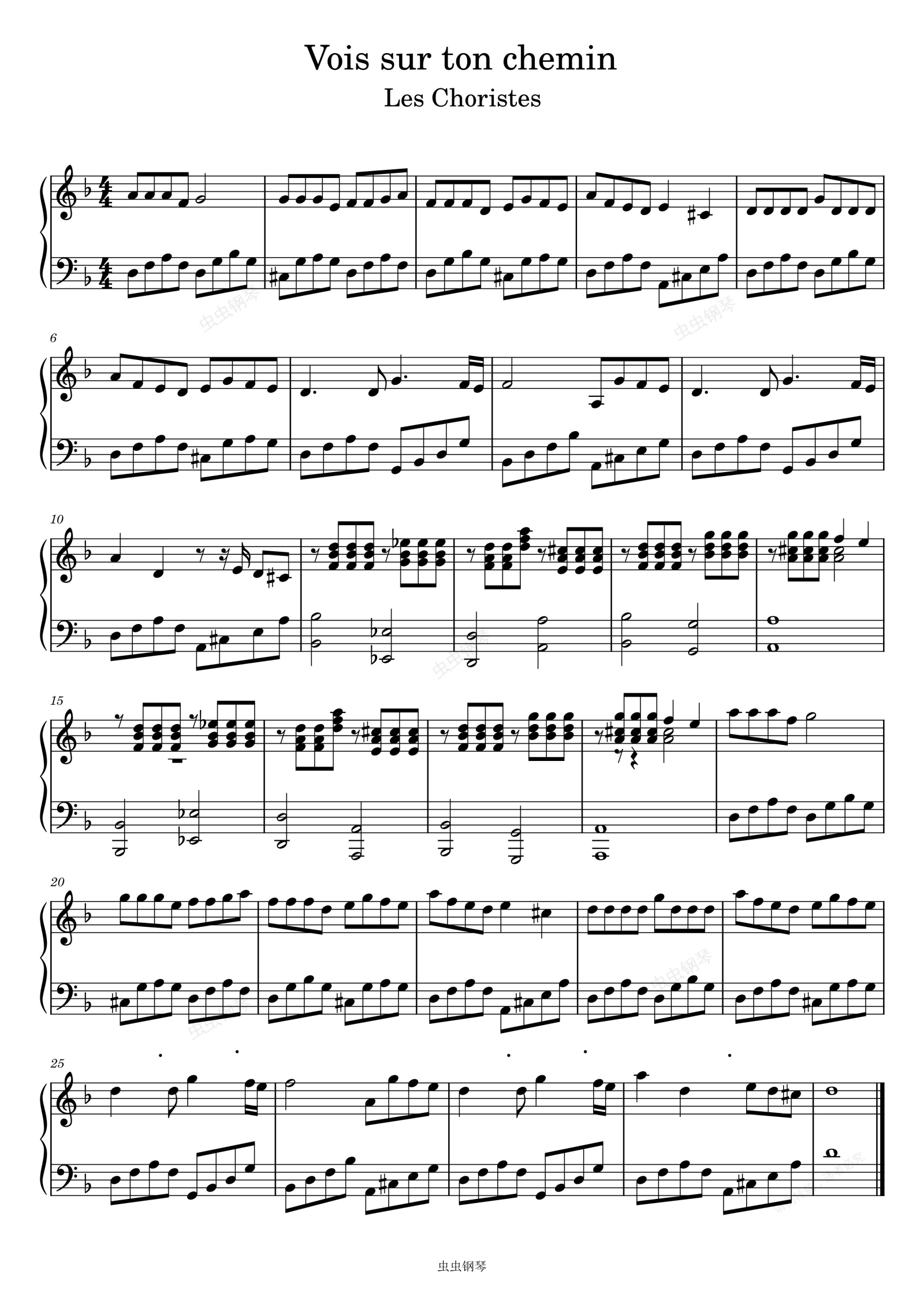 钢琴谱:Vois sur ton chemin-Les Choristes