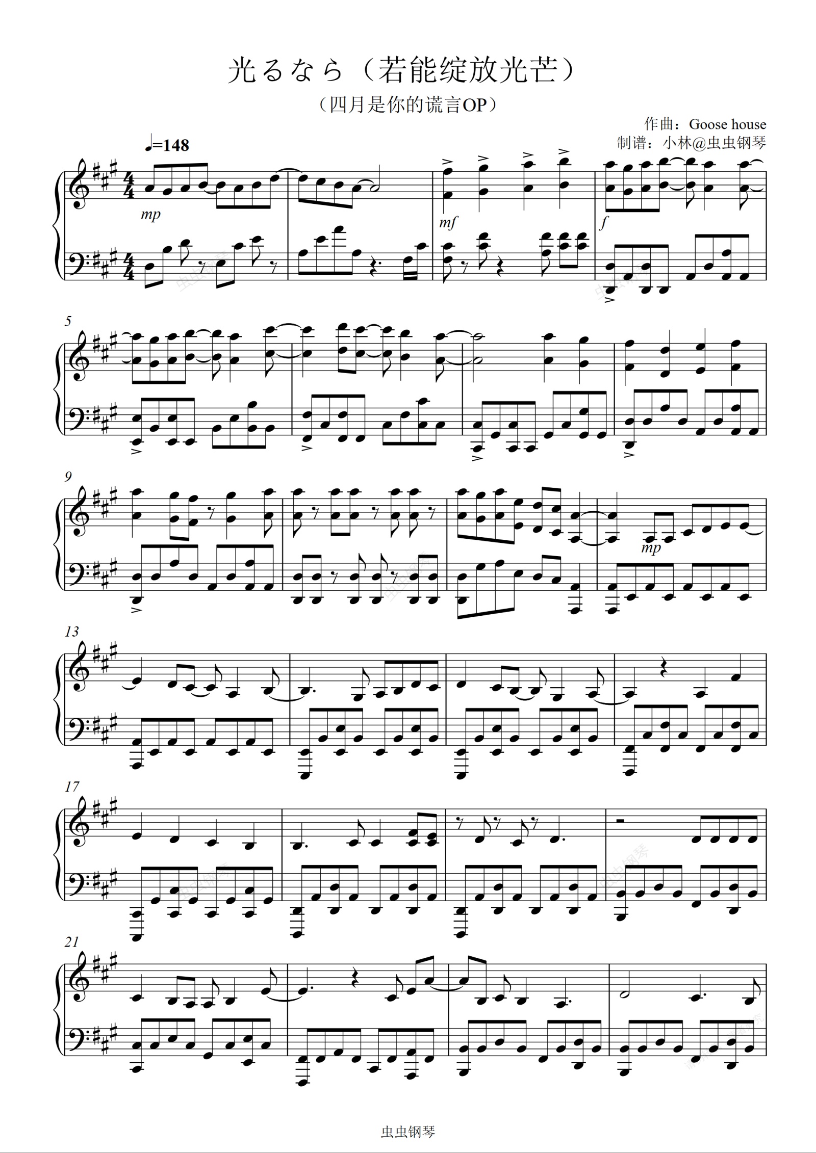 钢琴谱:光るなら(若能绽放光芒)(四月是你的谎言OP1)