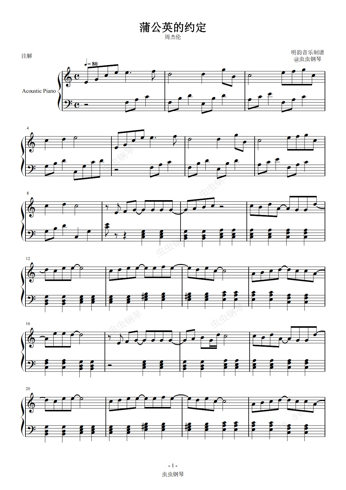 钢琴谱:蒲公英的约定-周杰伦(简易版)