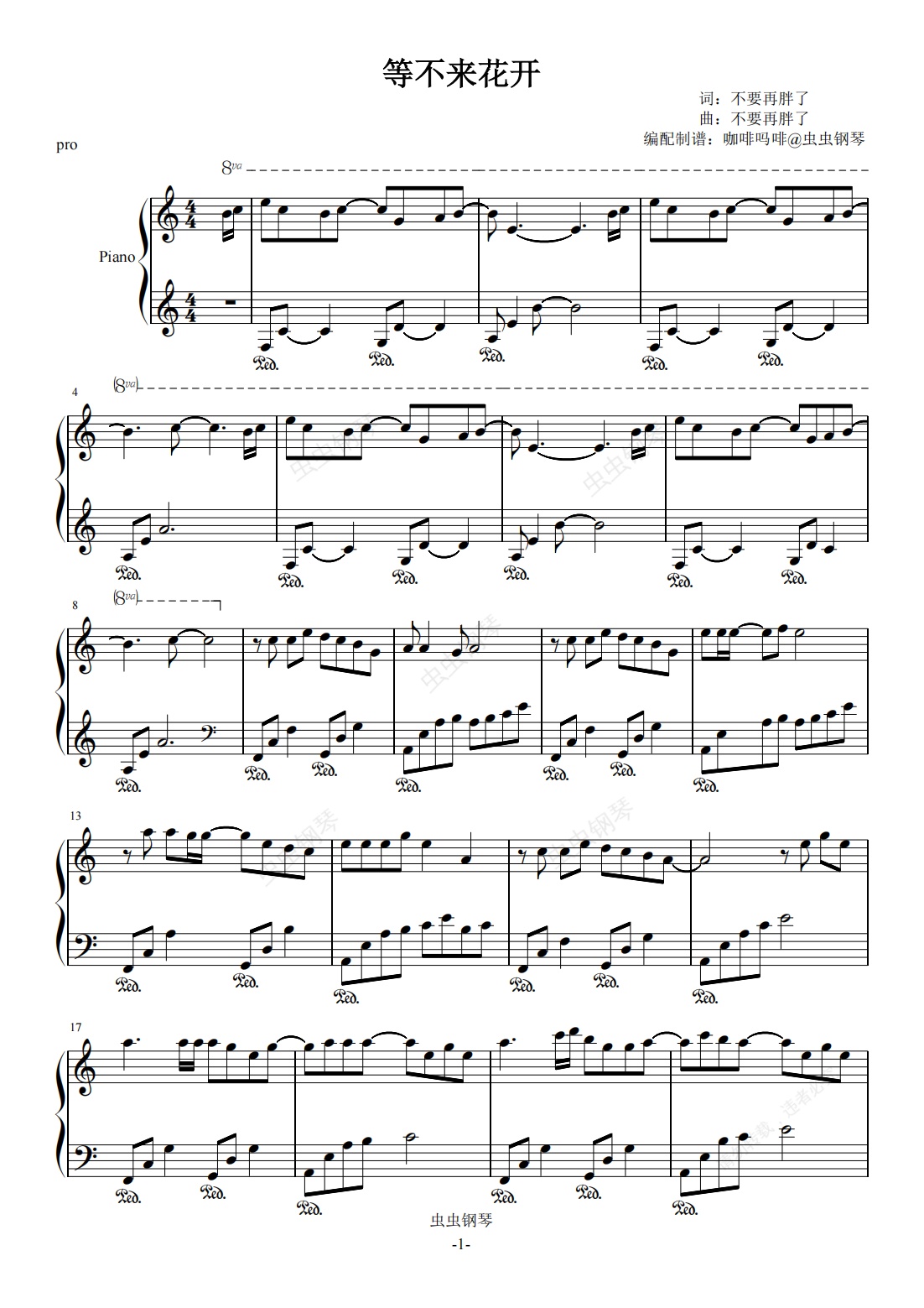 钢琴谱:等不来花开-pro C调钢琴谱