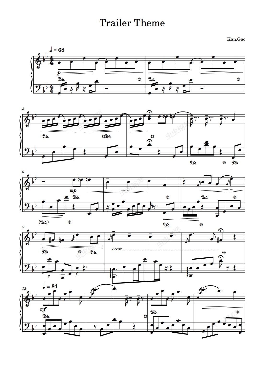 钢琴谱:影子工厂-《Trailer Theme》
