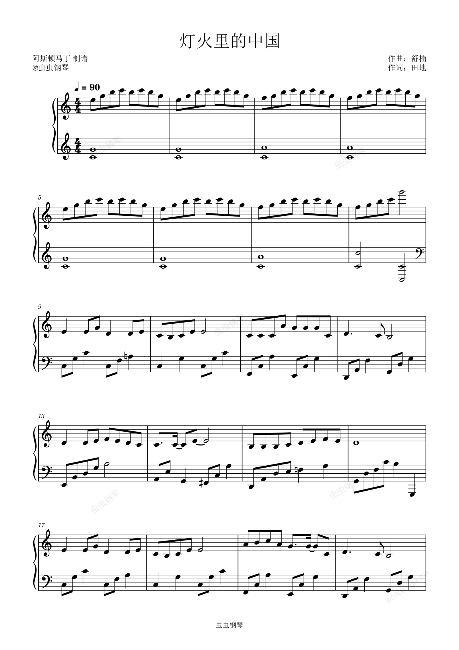 钢琴谱:灯火里的中国 - 张也/周深【初学简易版】