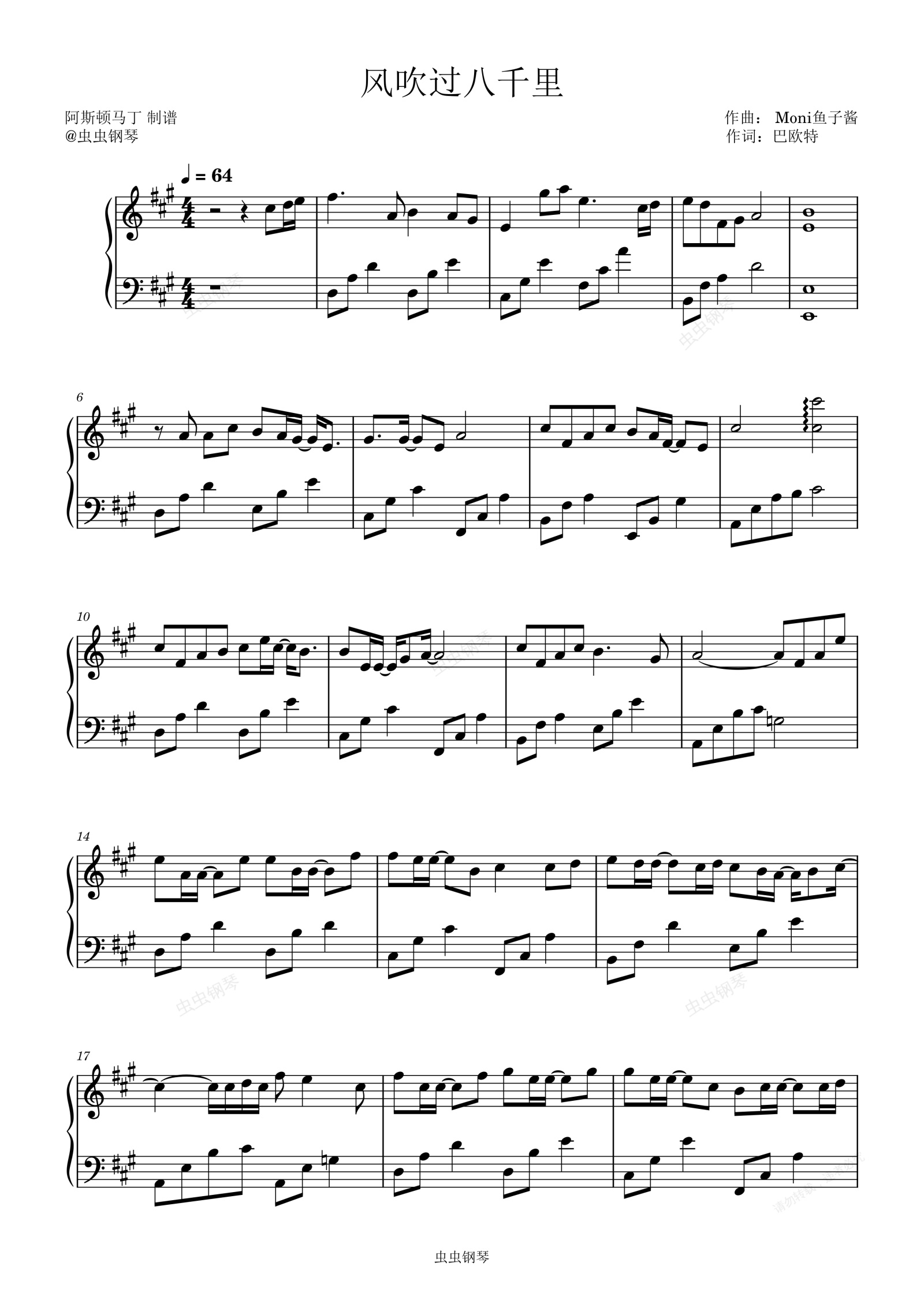 钢琴谱:风吹过八千里 - 苏星婕【初学简易版】