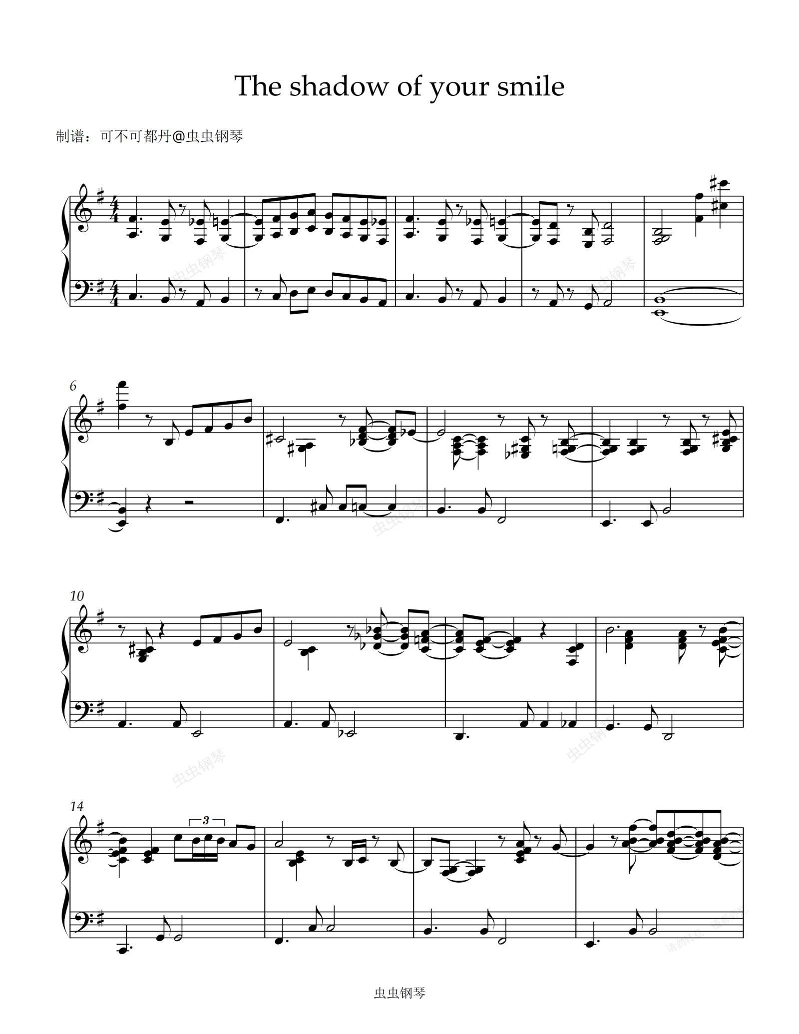 钢琴谱:The shadow of your smile-Bossa Nova钢琴独奏