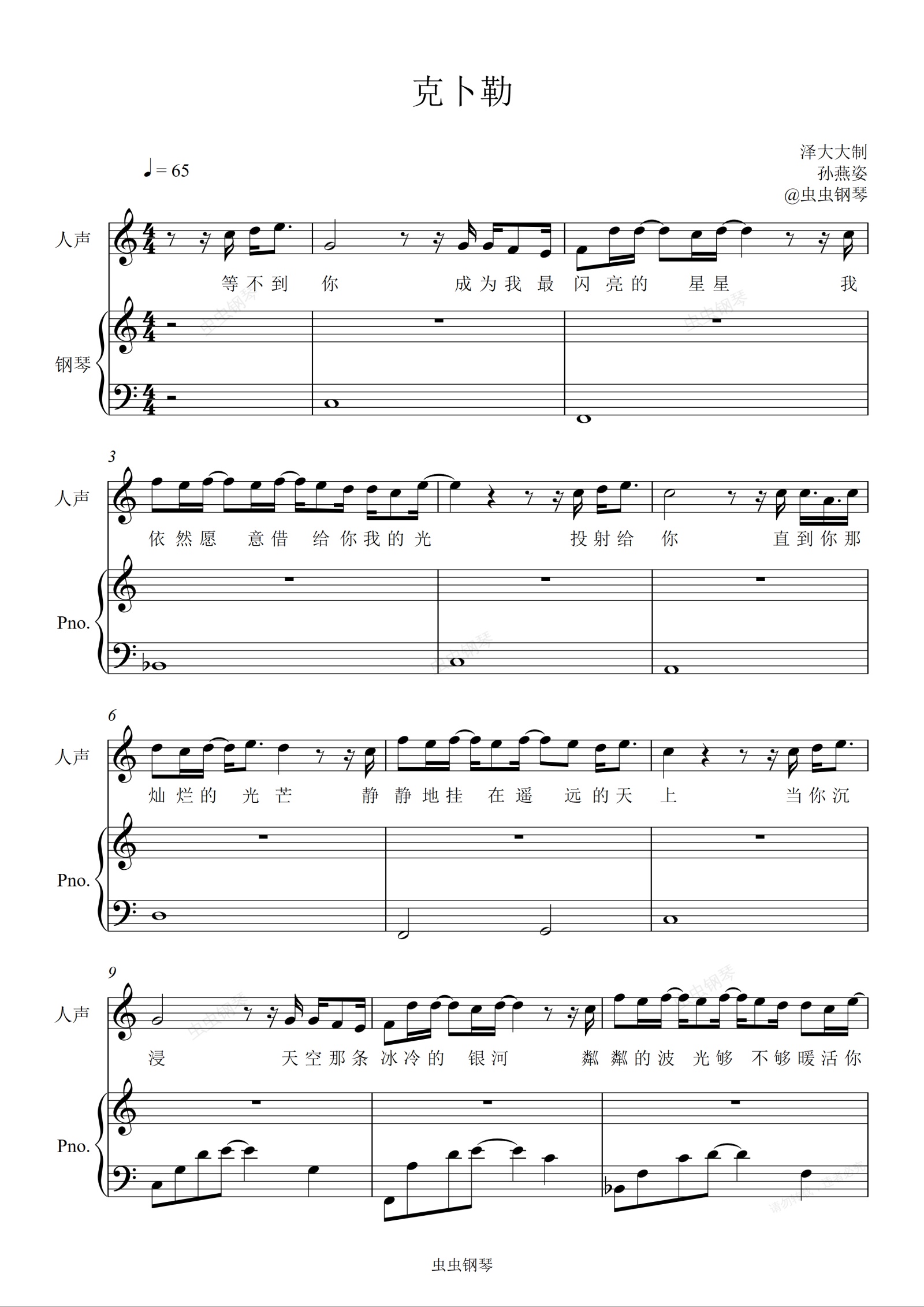 钢琴谱:克卜勒【原版C调弹唱附词】泽大大 孙燕姿