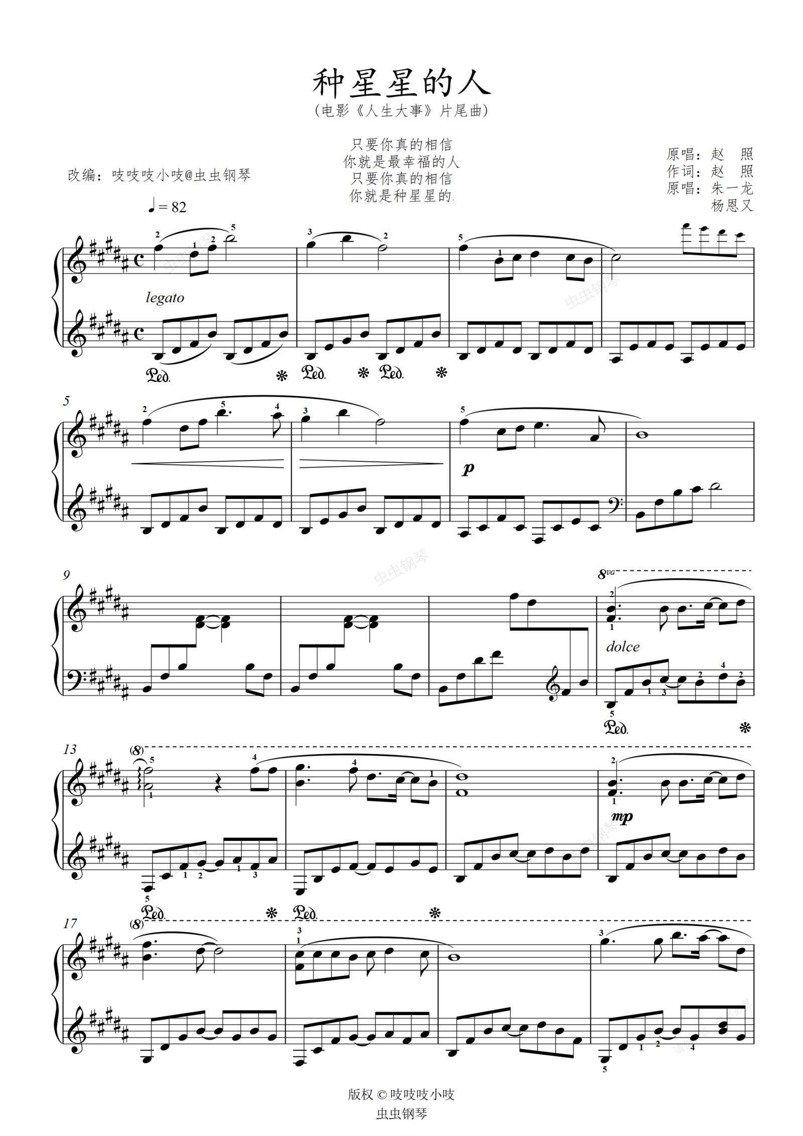 钢琴谱:种星星的人 原调指法 (电影《人生大事》片尾曲)《初学者钢琴曲系列》
