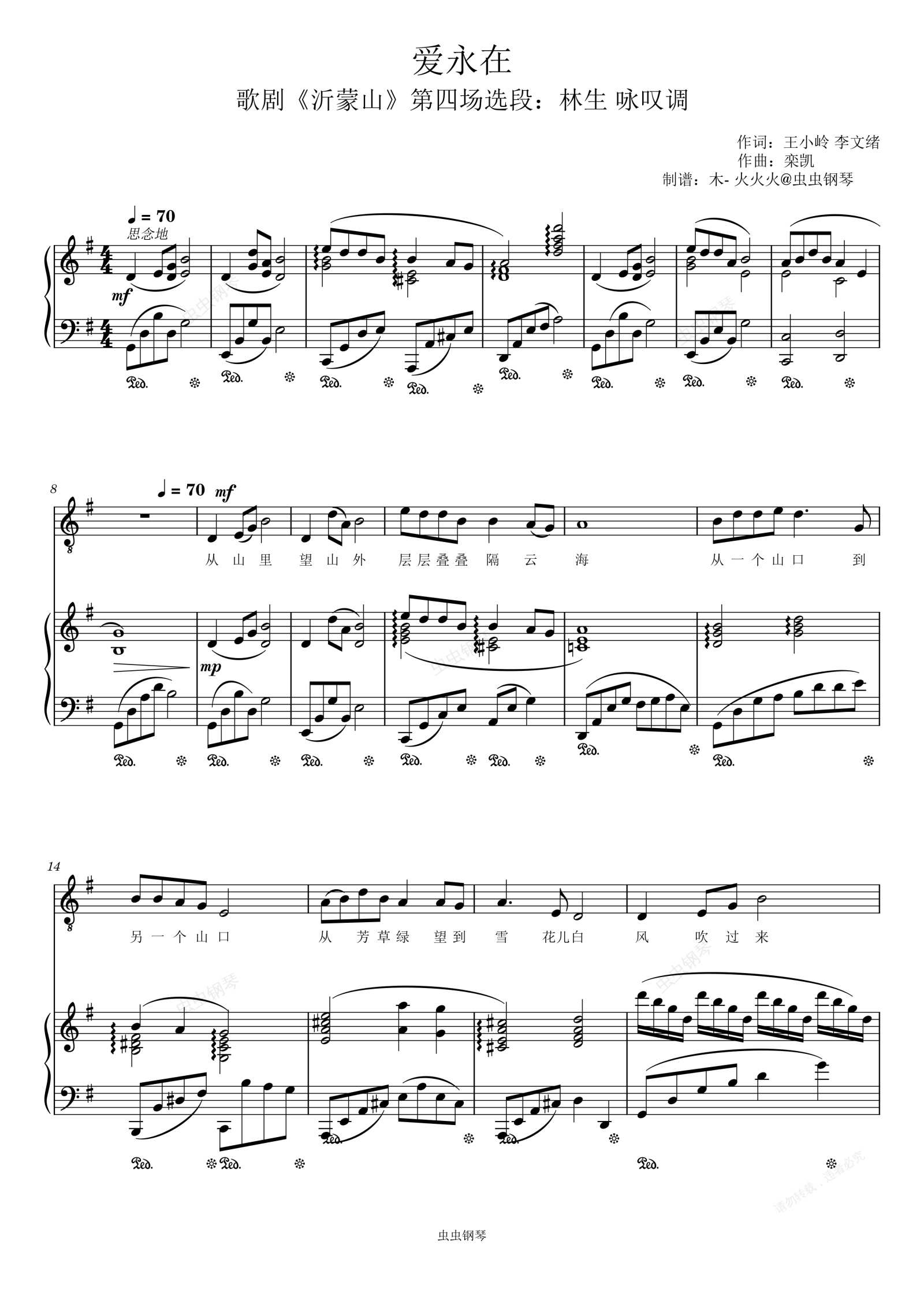 钢琴谱:《爱永在》男高音(歌剧《沂蒙山》选曲)G调