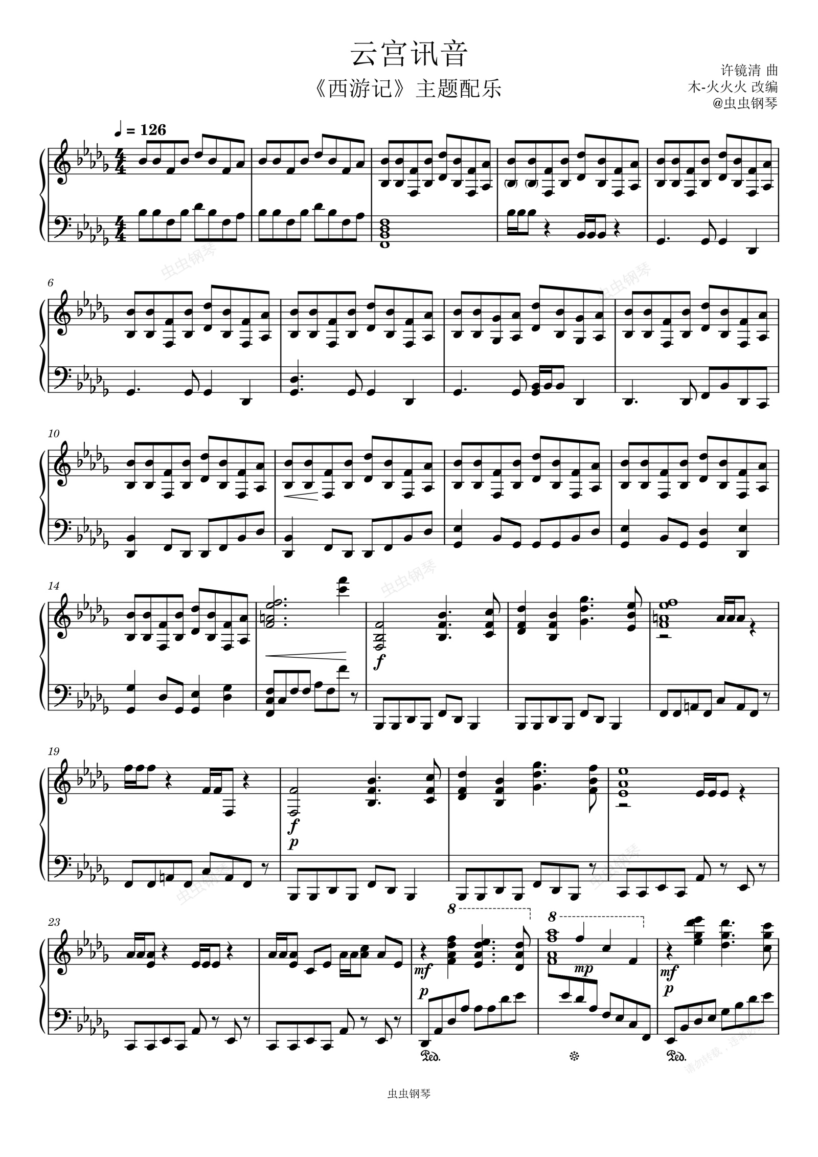 钢琴谱:原声扒谱《云宫迅音》bD调、86版《西游记》主题配乐