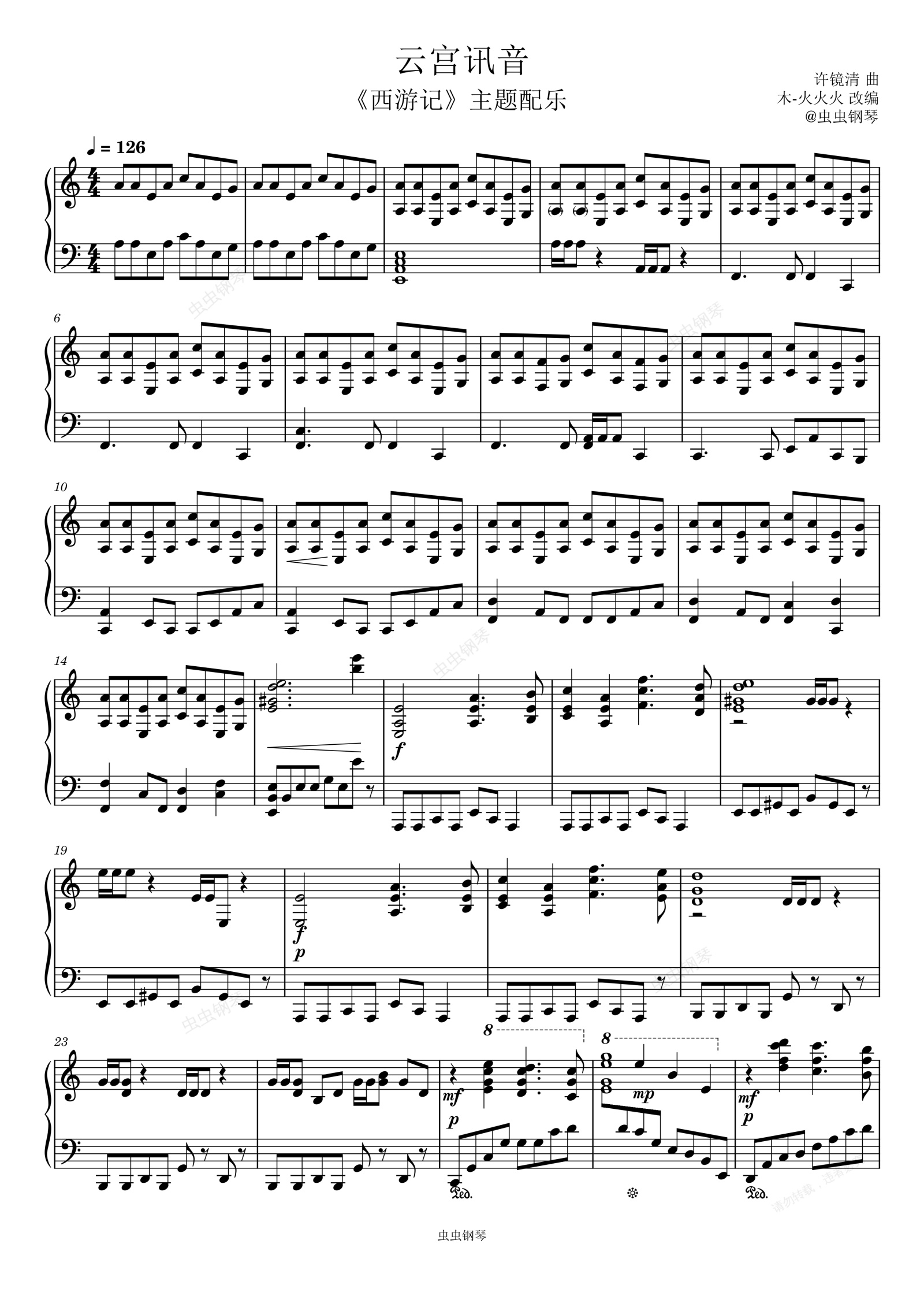 钢琴谱:原声扒谱《云宫迅音》C调、86版《西游记》主题配乐