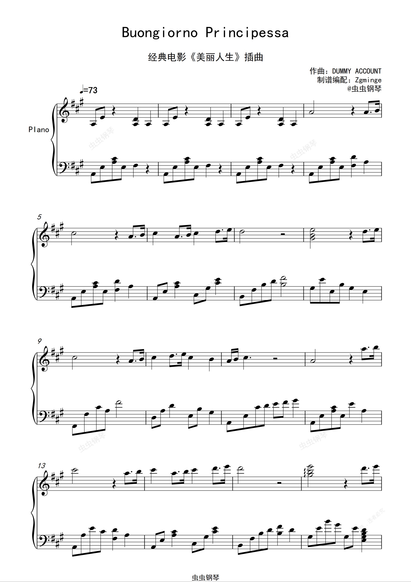 钢琴谱:Buongiorno Principessa 超温馨《美丽人生》