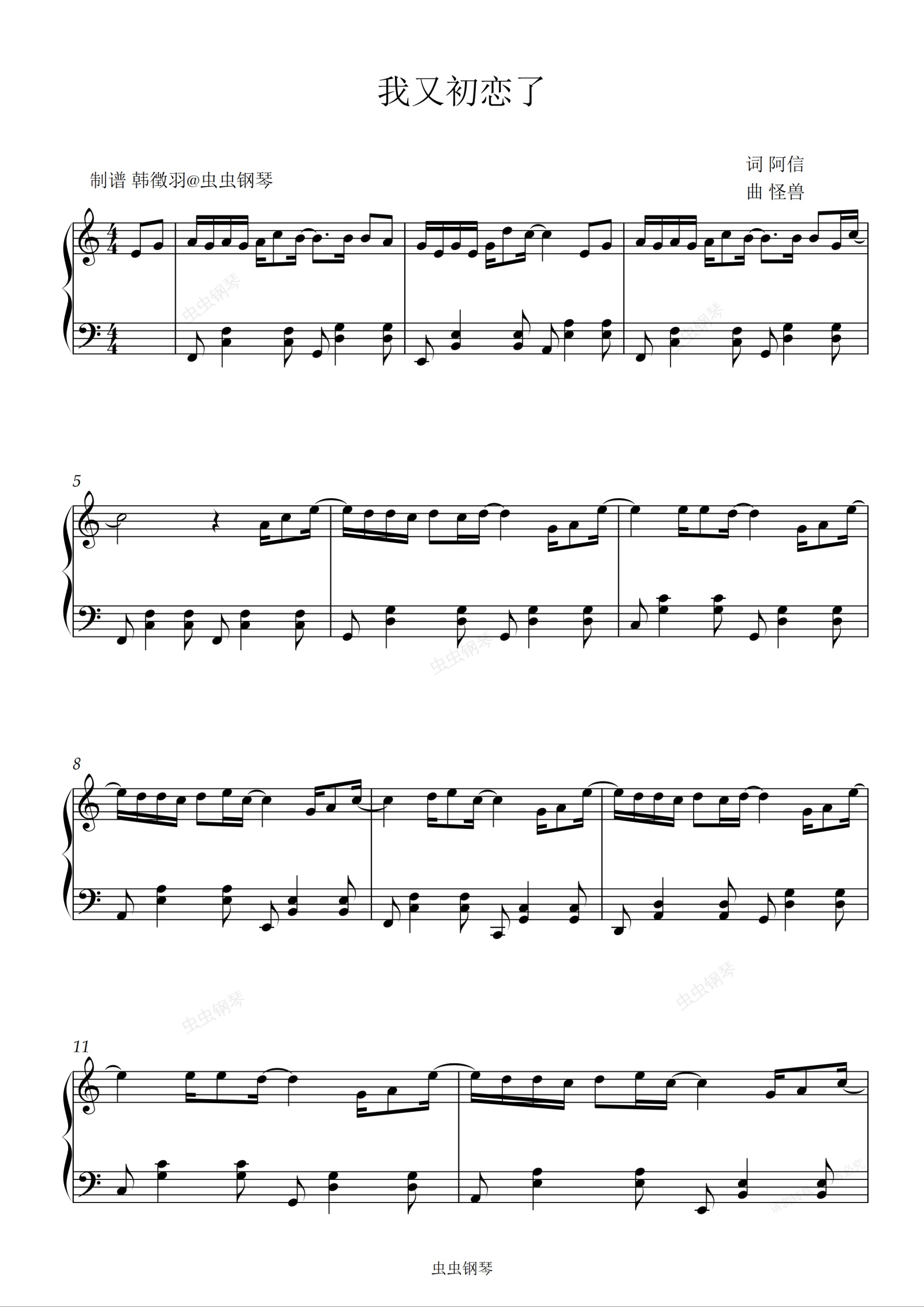 钢琴谱:我又初恋了(片段) 五月天
