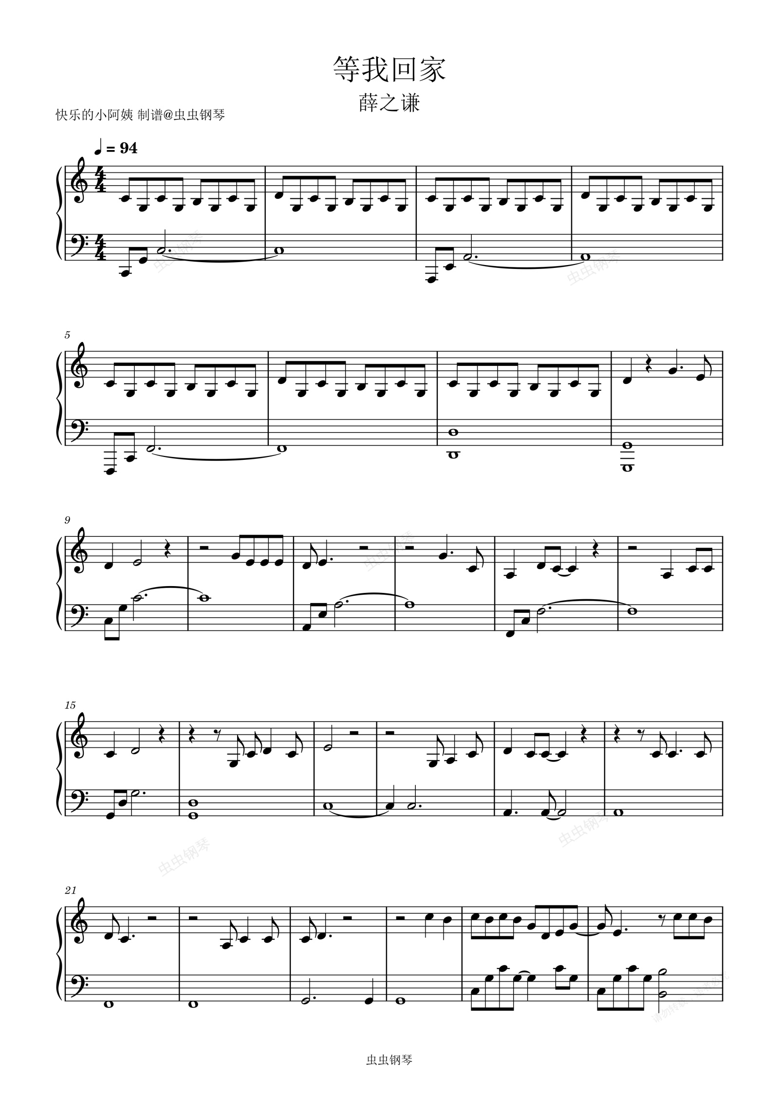 钢琴谱:等我回家