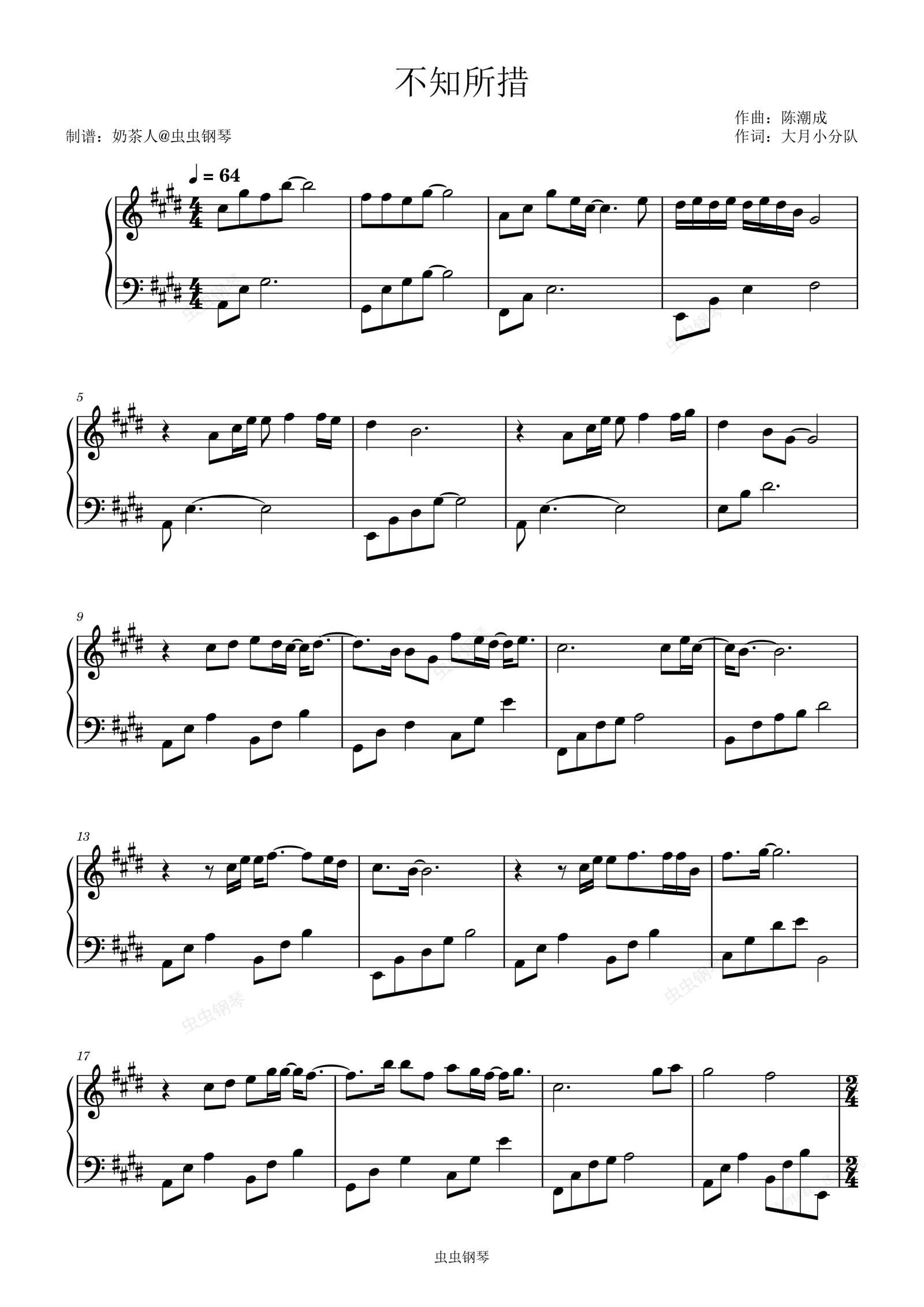 钢琴谱:《不知所措》 成人简易流行钢琴谱 E调 忧伤伤感旋律