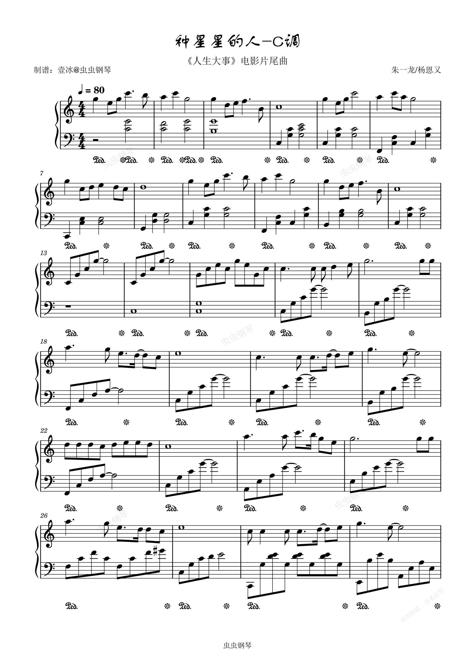钢琴谱:种星星的人//《人生大事》电影片尾曲-C调