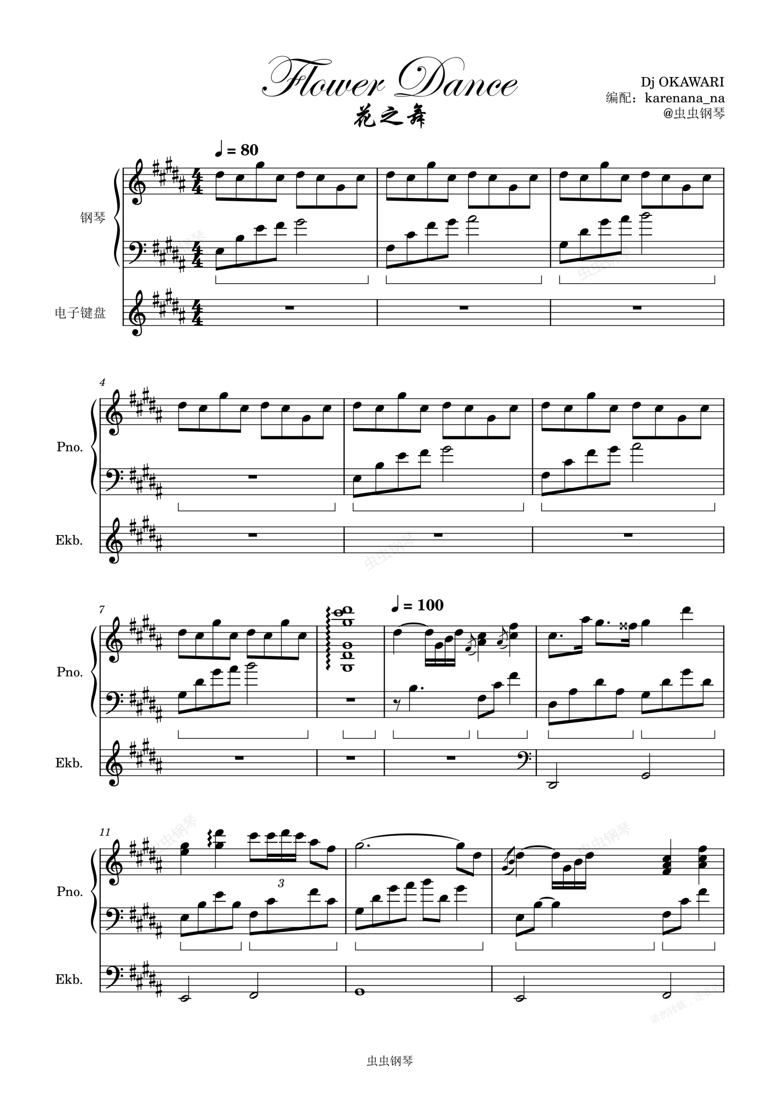 钢琴谱:Flower Dance—Dj Okawari【原版】完美还原
