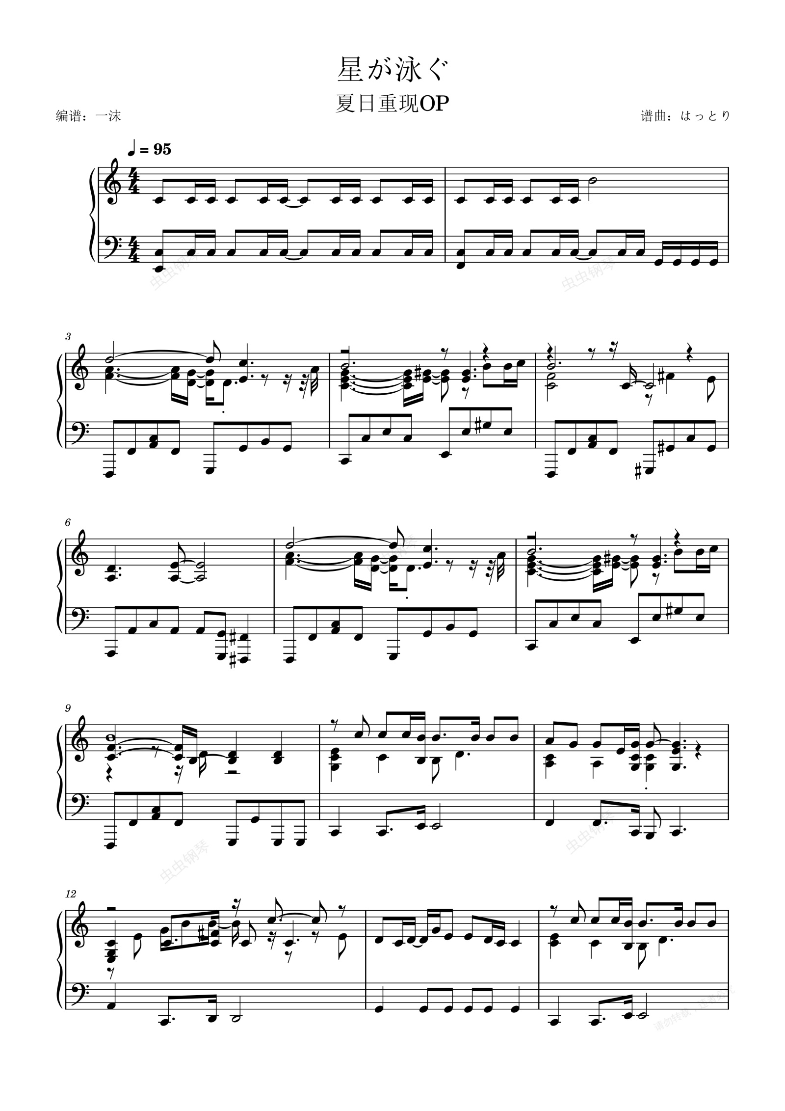 钢琴谱:夏日重现OP-星が泳ぐ 独奏谱