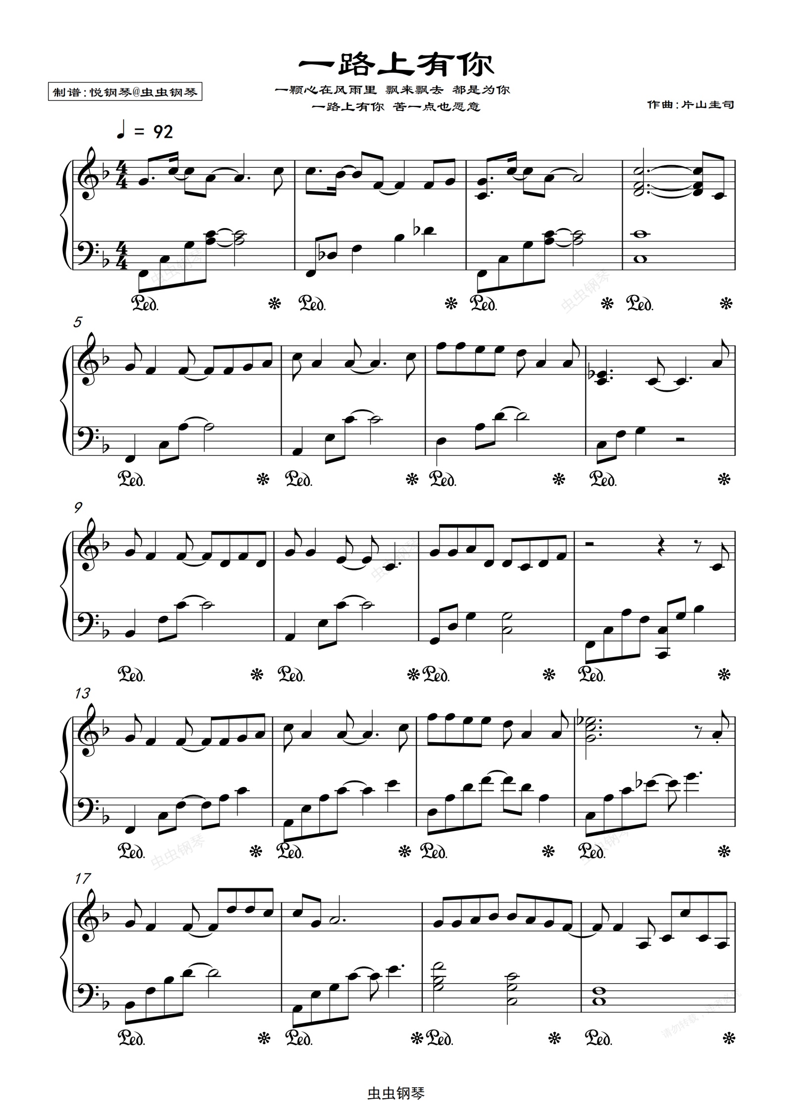 钢琴谱:一路上有你-张学友