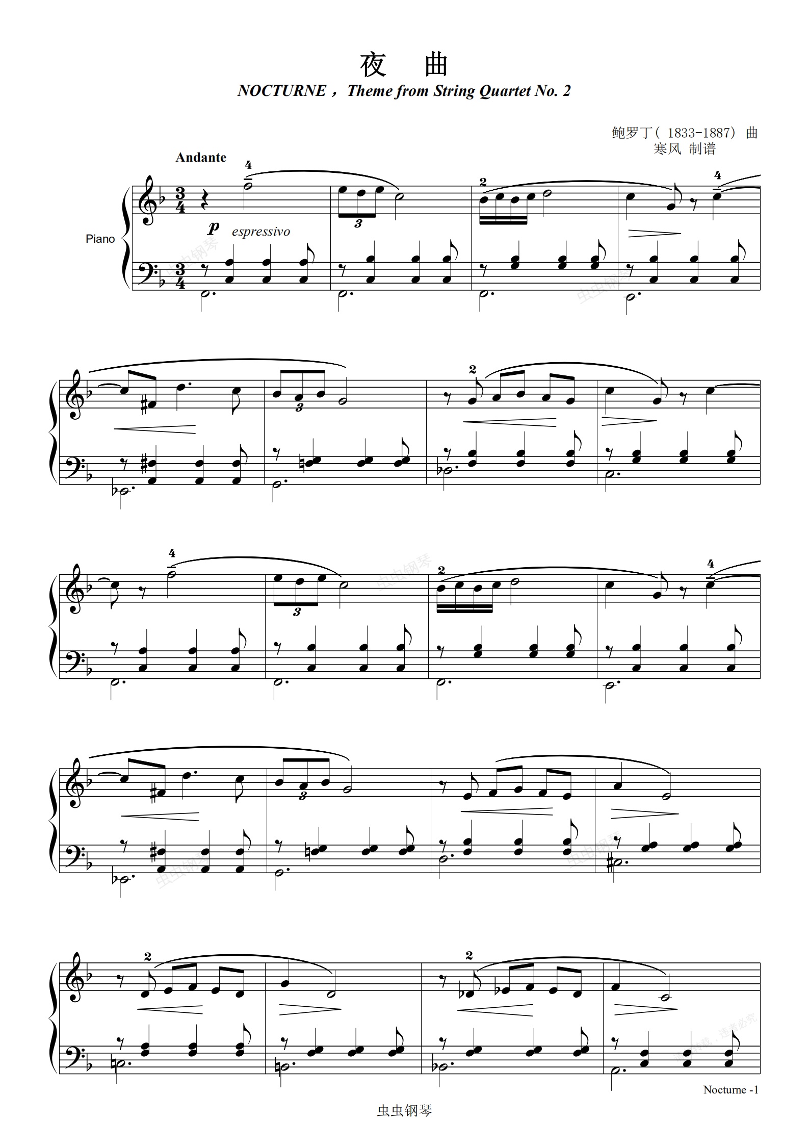 钢琴谱:鲍罗丁-夜曲(附指法)
