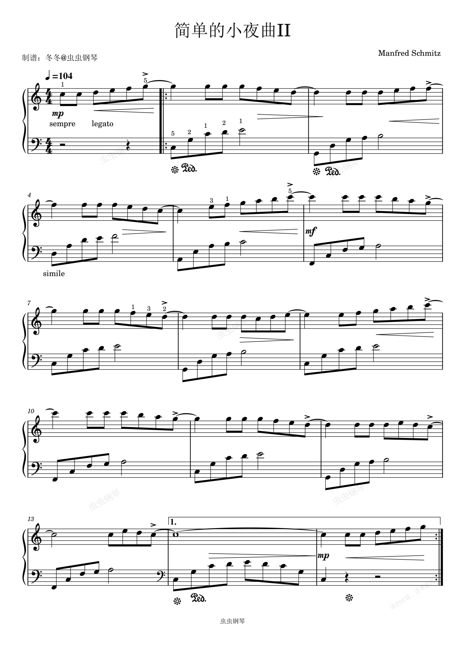 钢琴谱:简单的小夜曲II