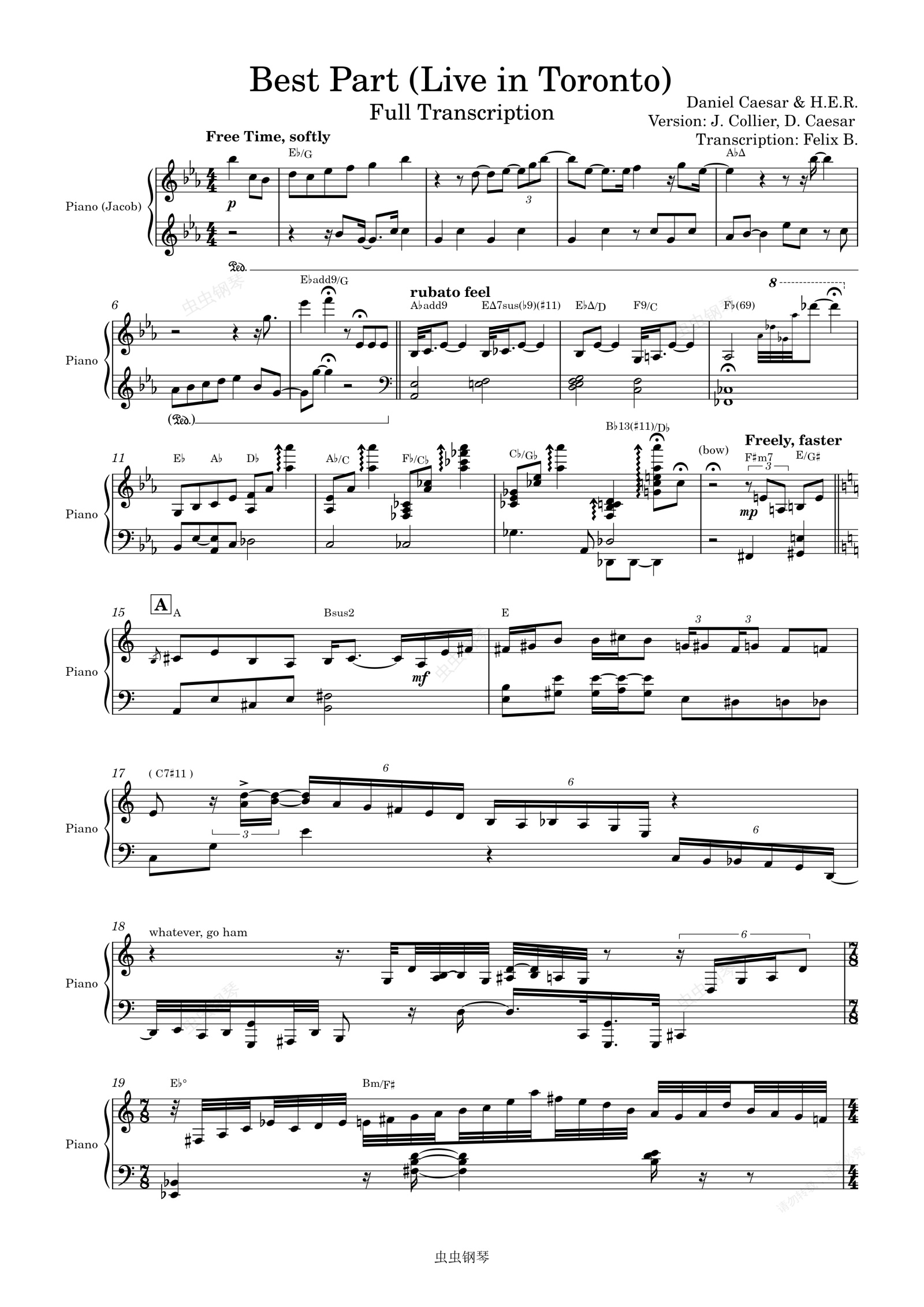 钢琴谱:Best Part-Daniel Caesar / H.E.R.