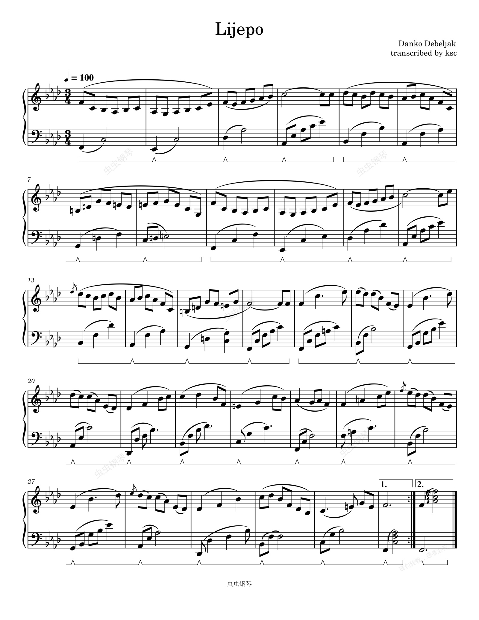 钢琴谱:Lijepo-Danko Debeljak