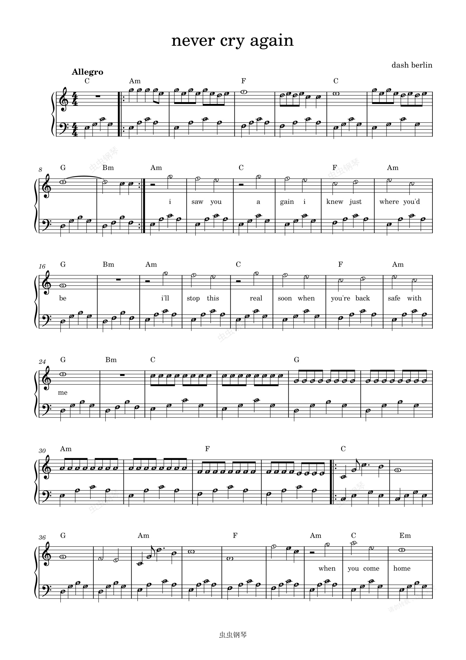 钢琴谱:Never Cry Again-Dash Berlin