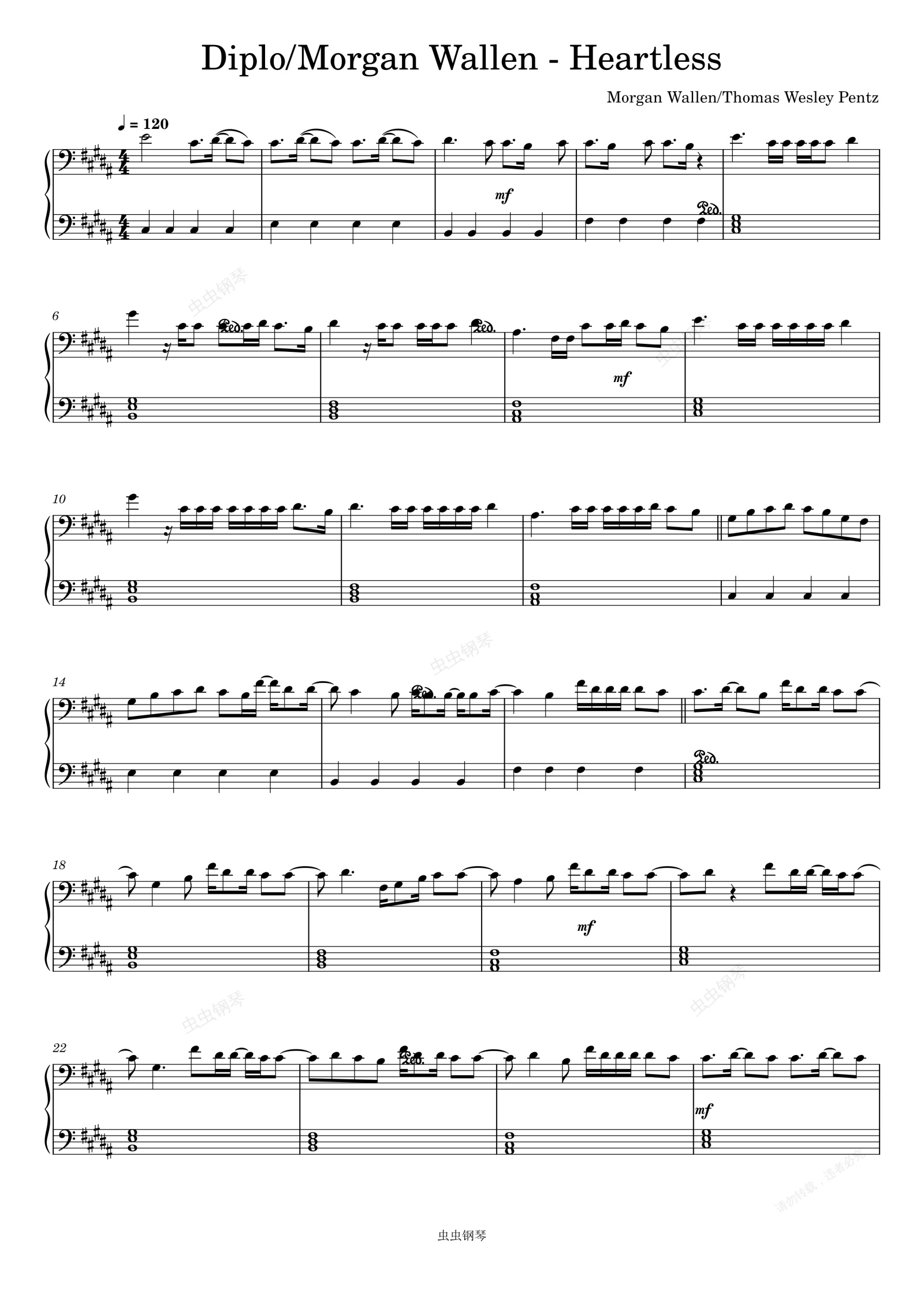 钢琴谱:Diplo/Morgan Wallen - Heartless